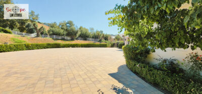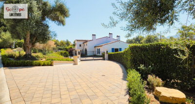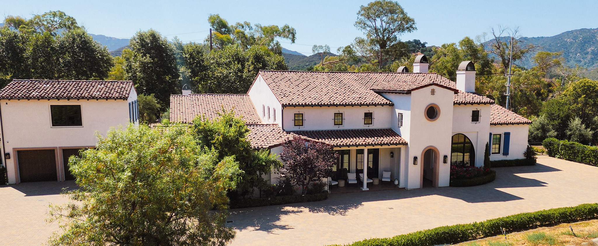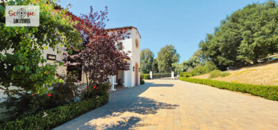 Grand Arrival – Long private drive leading to a dramatic estate setting, framed by sweeping hillside vistas.