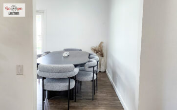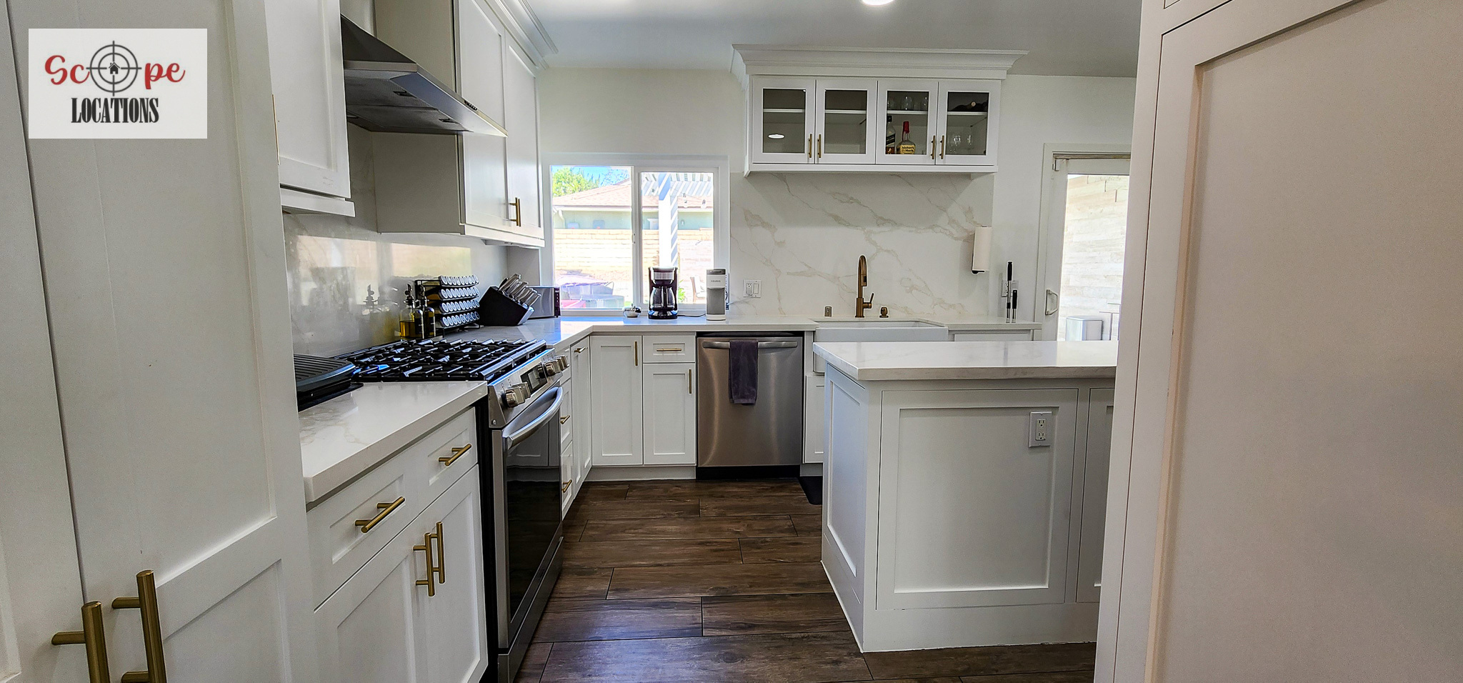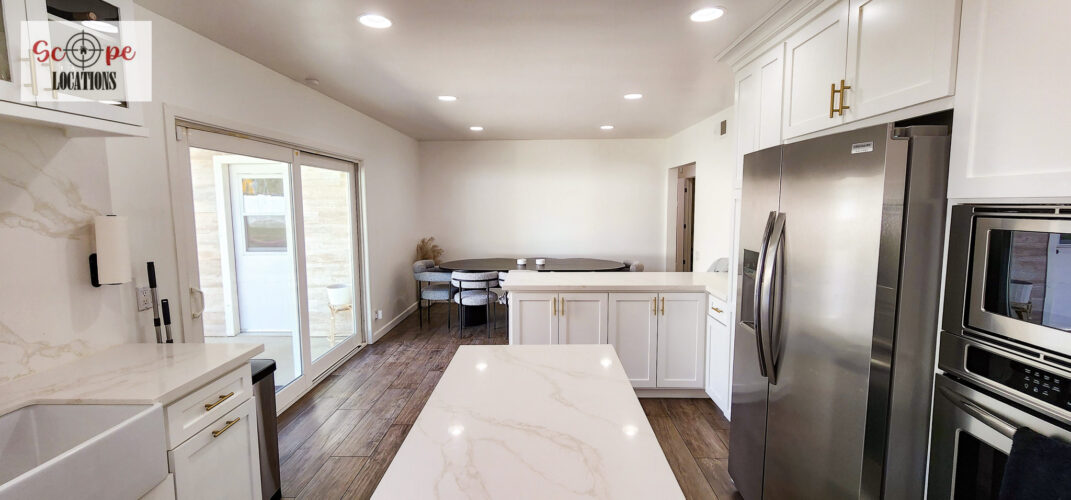 Hardwood FloorsRecessed LightingStainless SteelFarmhouseLight Color PaletteWhiteBackyard viewSliding Glass Door