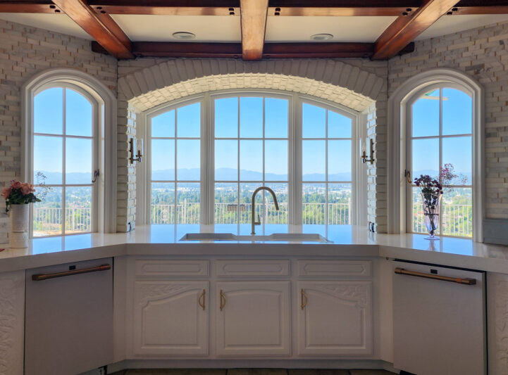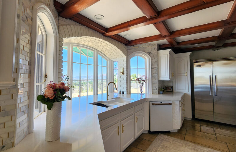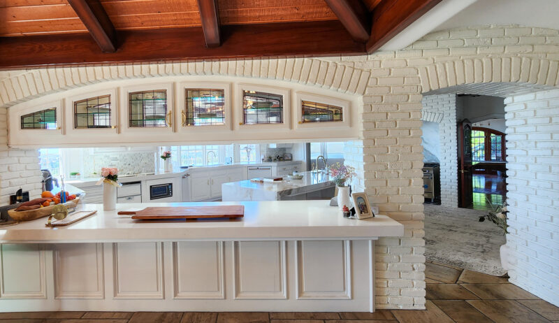 Tile FloorsRecessed LightingTraditionalLight Color PaletteAccent/Featured WallWhiteBackyard viewIsland Cooktop/SinkSunny/AiryWalk-In Pantry