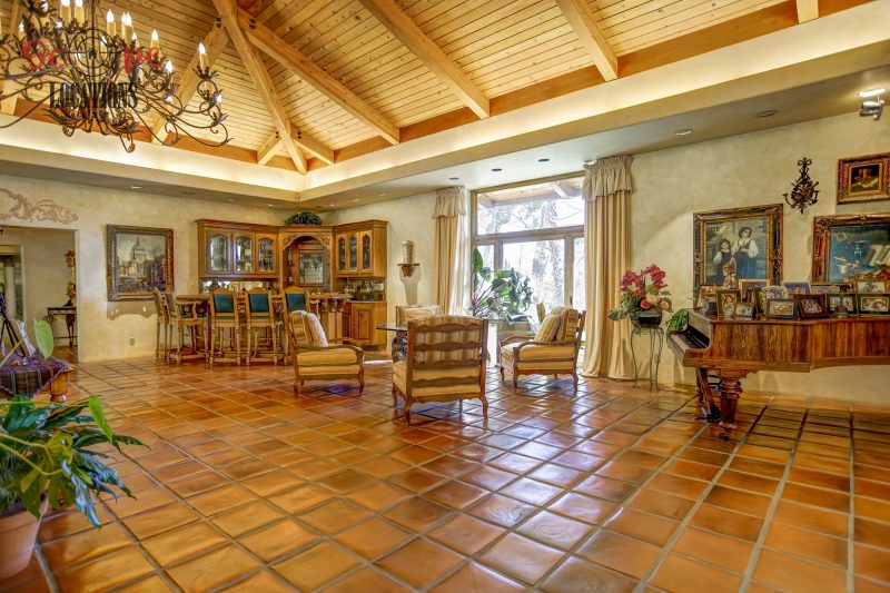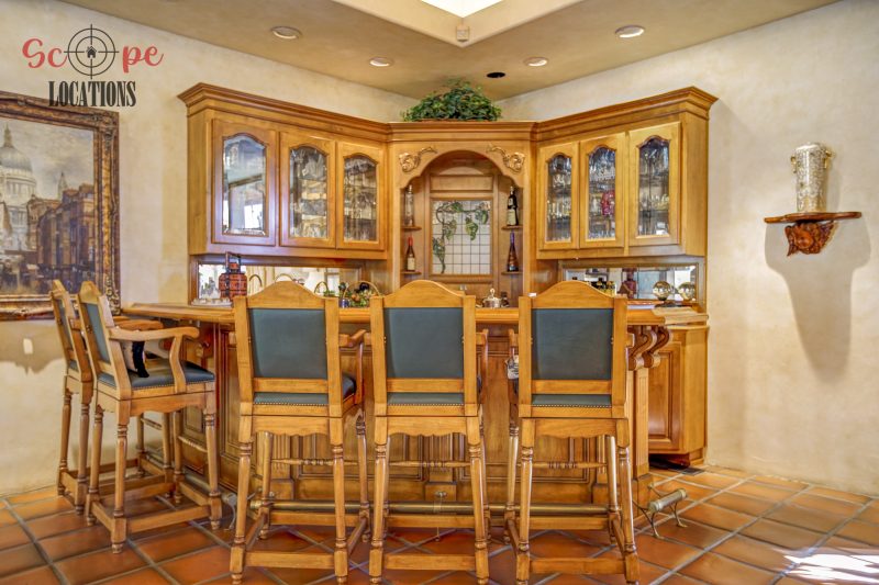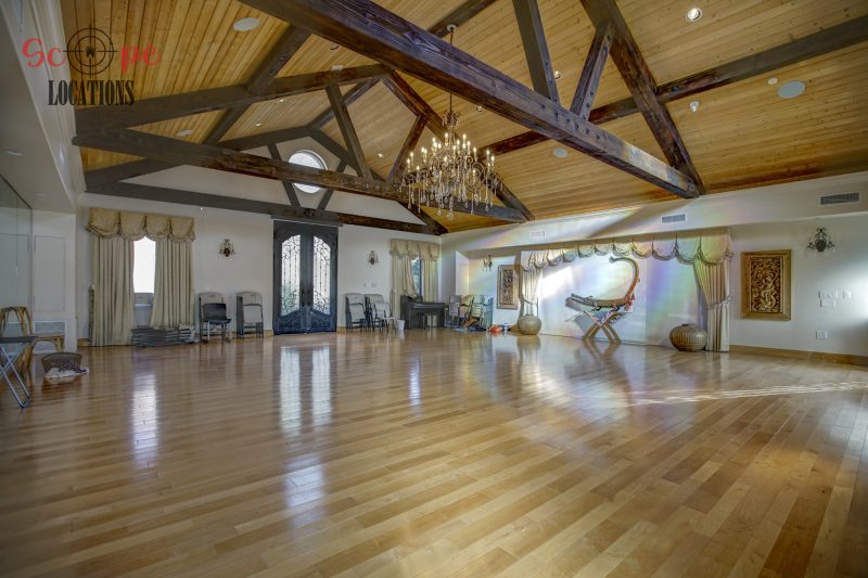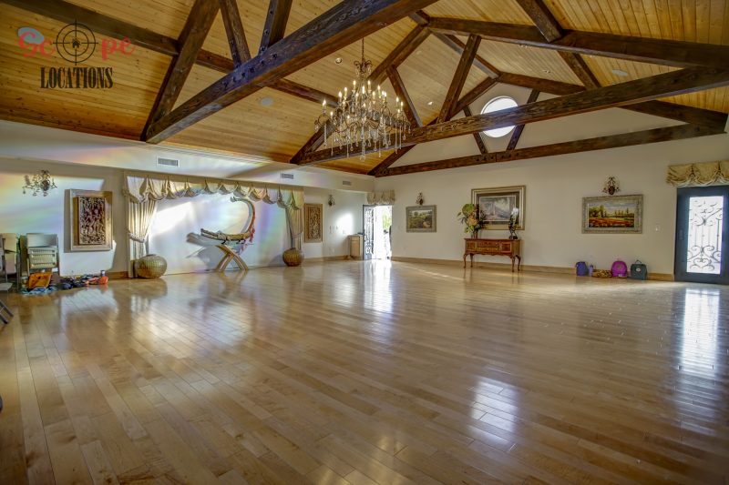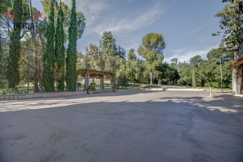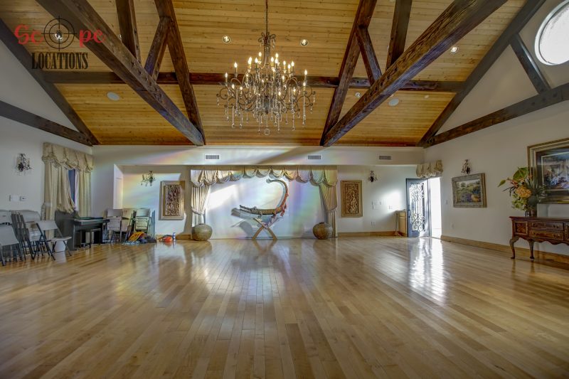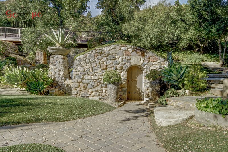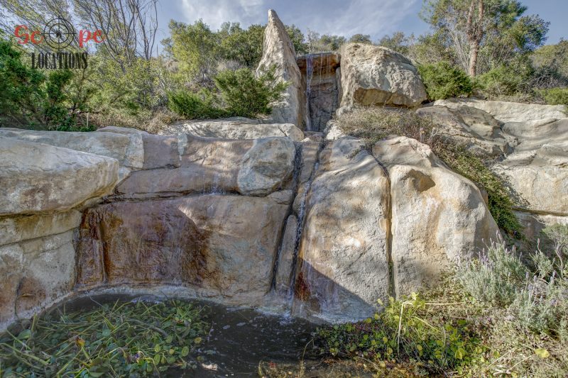Surrounded by diverse terrains—rocky mountains, forests, and open green spaces—the estate presents an alluring backdrop for filming, offering an array of settings for varied scenes. A garage caters to ten vehicles, supplemented by additional parking space accommodating 40 to 50 more cars between the driveway and small dirt lot. Its outdoor features include a captivating pool, spa, and gracefully cascading waterfalls that harmoniously blend into the estate’s surroundings.