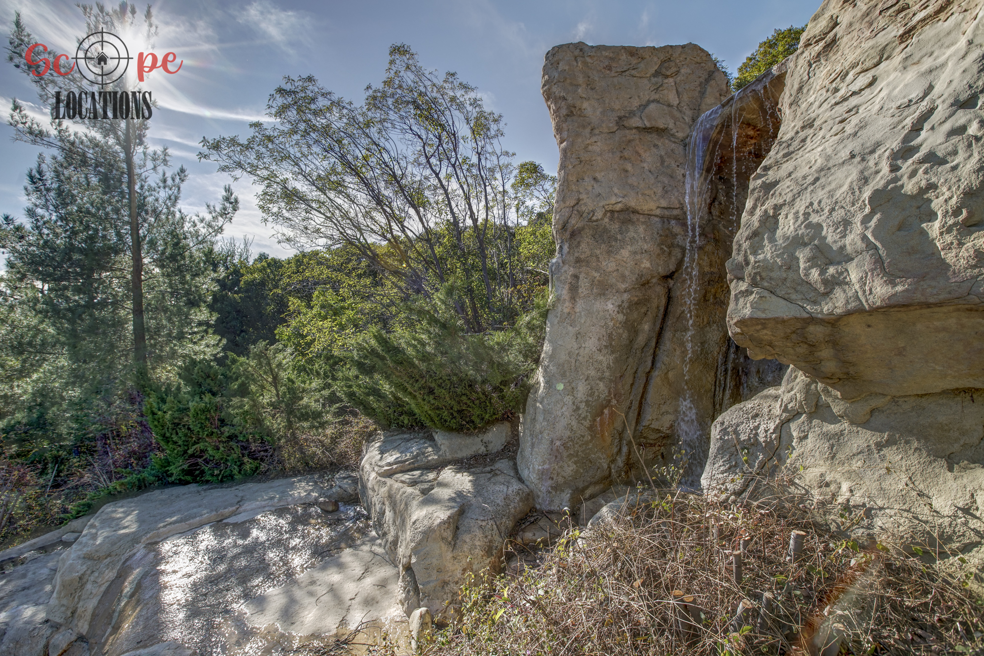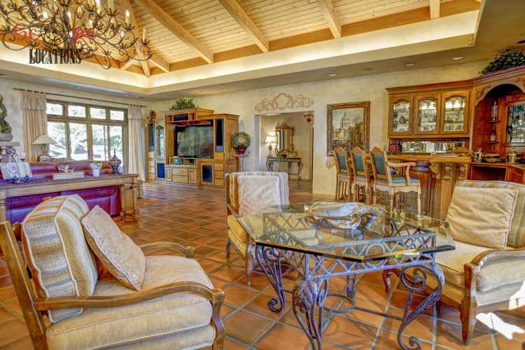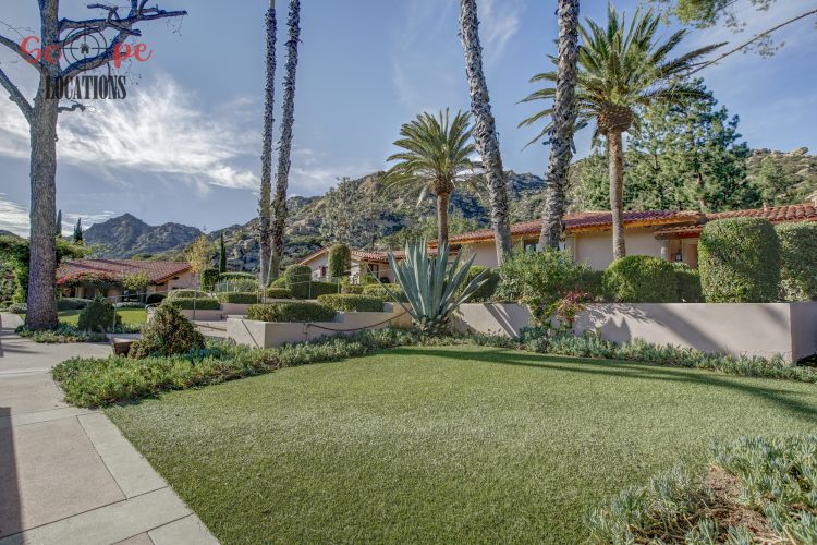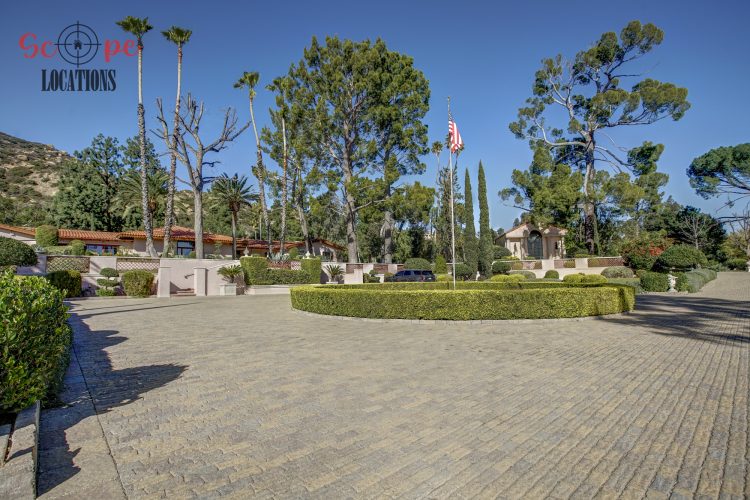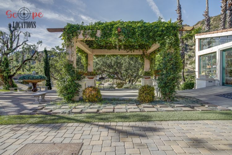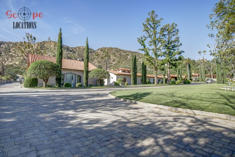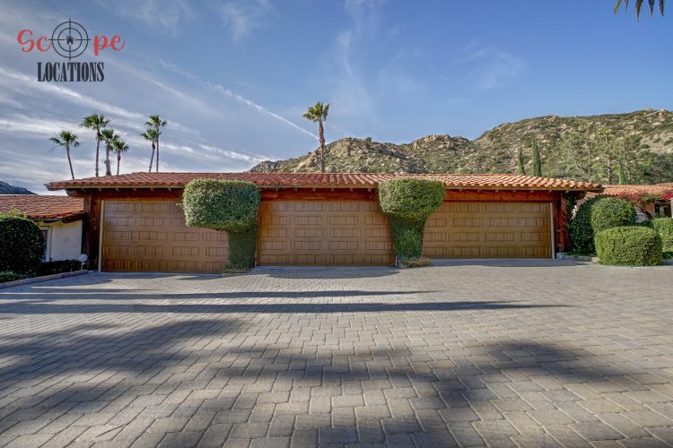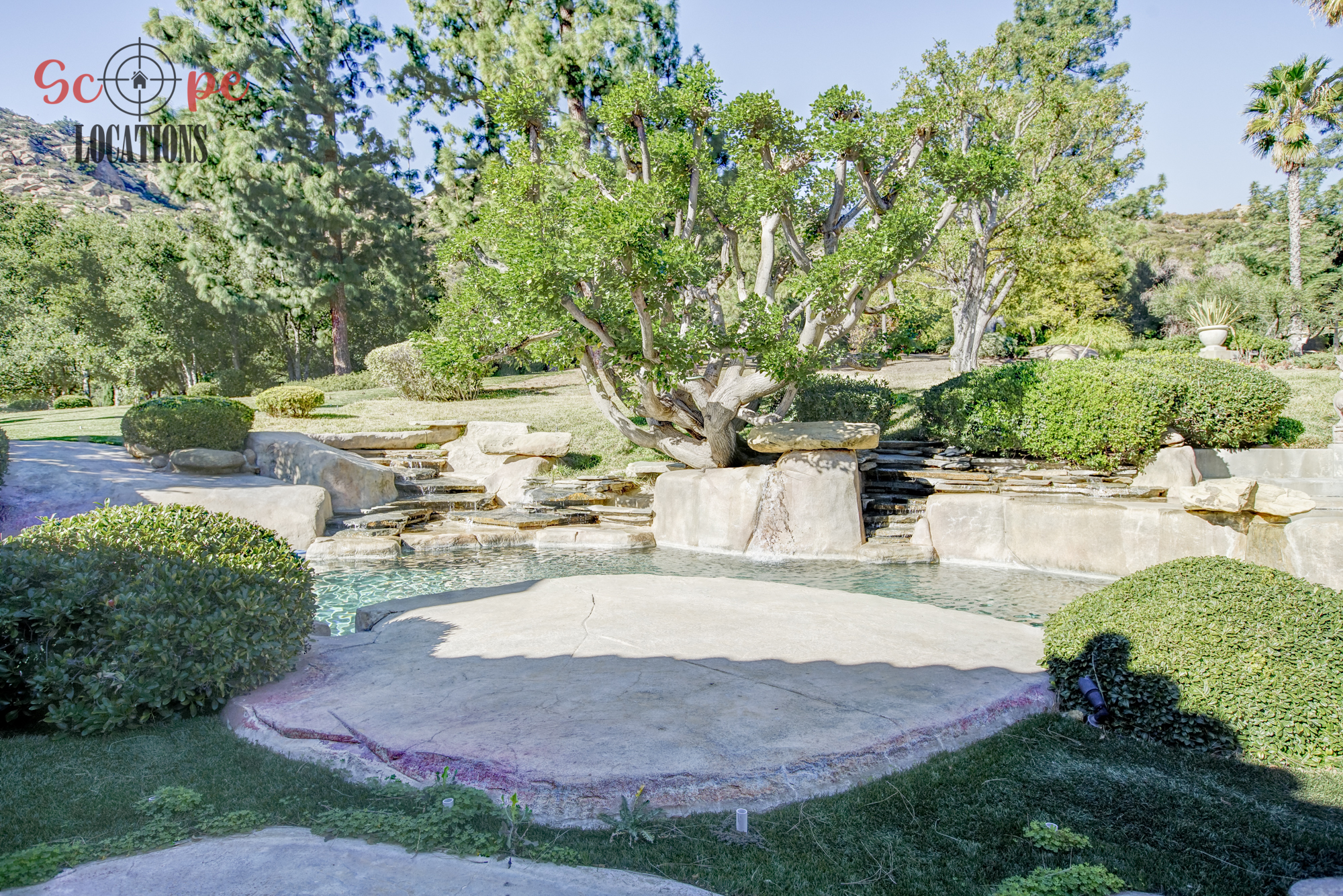 Surrounded by diverse terrains—rocky mountains, forests, and open green spaces—the estate presents an alluring backdrop for filming, offering an array of settings for varied scenes. A garage caters to ten vehicles, supplemented by additional parking space accommodating 40 to 50 more cars between the driveway and small dirt lot. Its outdoor features include a captivating pool, spa, and gracefully cascading waterfalls that harmoniously blend into the estate’s surroundings.