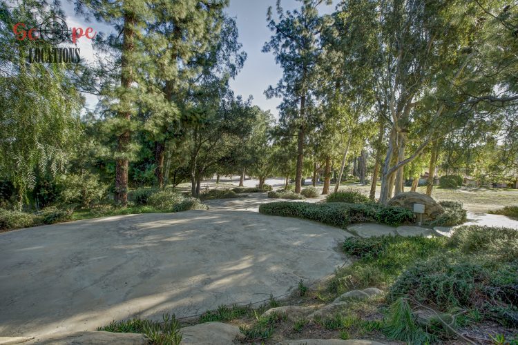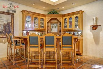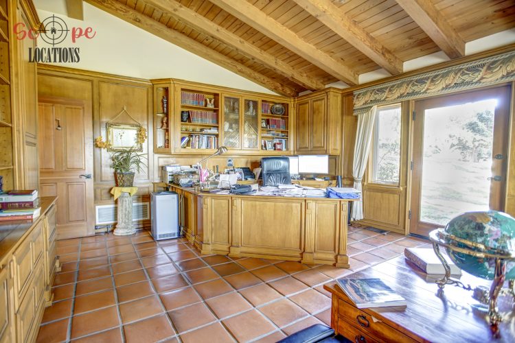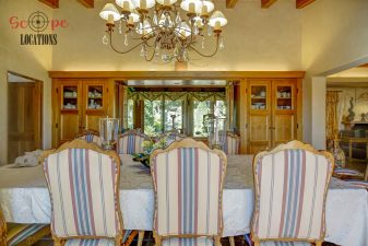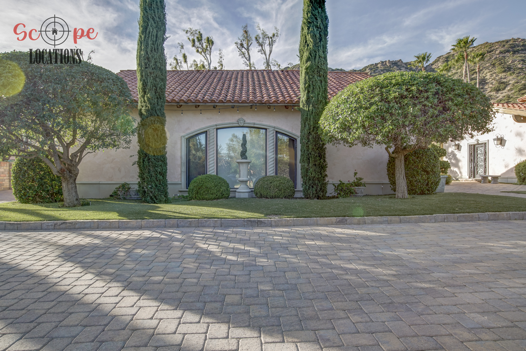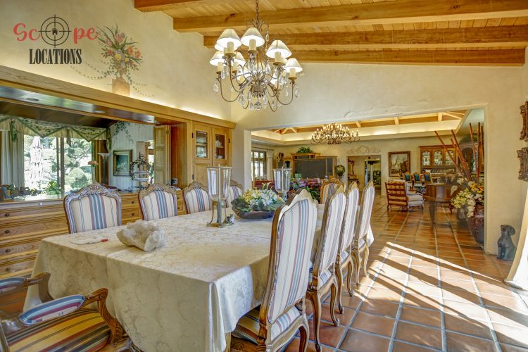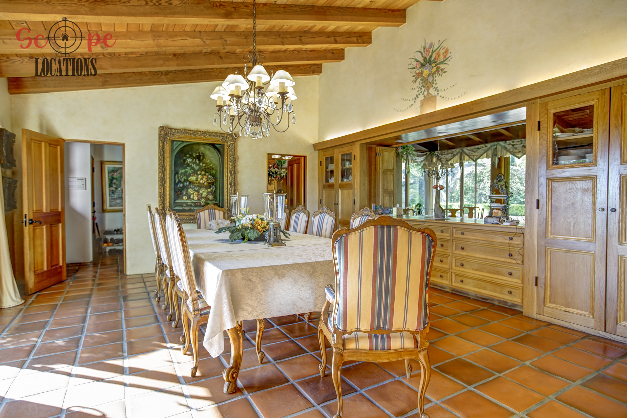 Surrounded by diverse terrains—rocky mountains, forests, and open green spaces—the estate presents an alluring backdrop for filming, offering an array of settings for varied scenes. A garage caters to ten vehicles, supplemented by additional parking space accommodating 40 to 50 more cars between the driveway and small dirt lot. Its outdoor features include a captivating pool, spa, and gracefully cascading waterfalls that harmoniously blend into the estate’s surroundings.