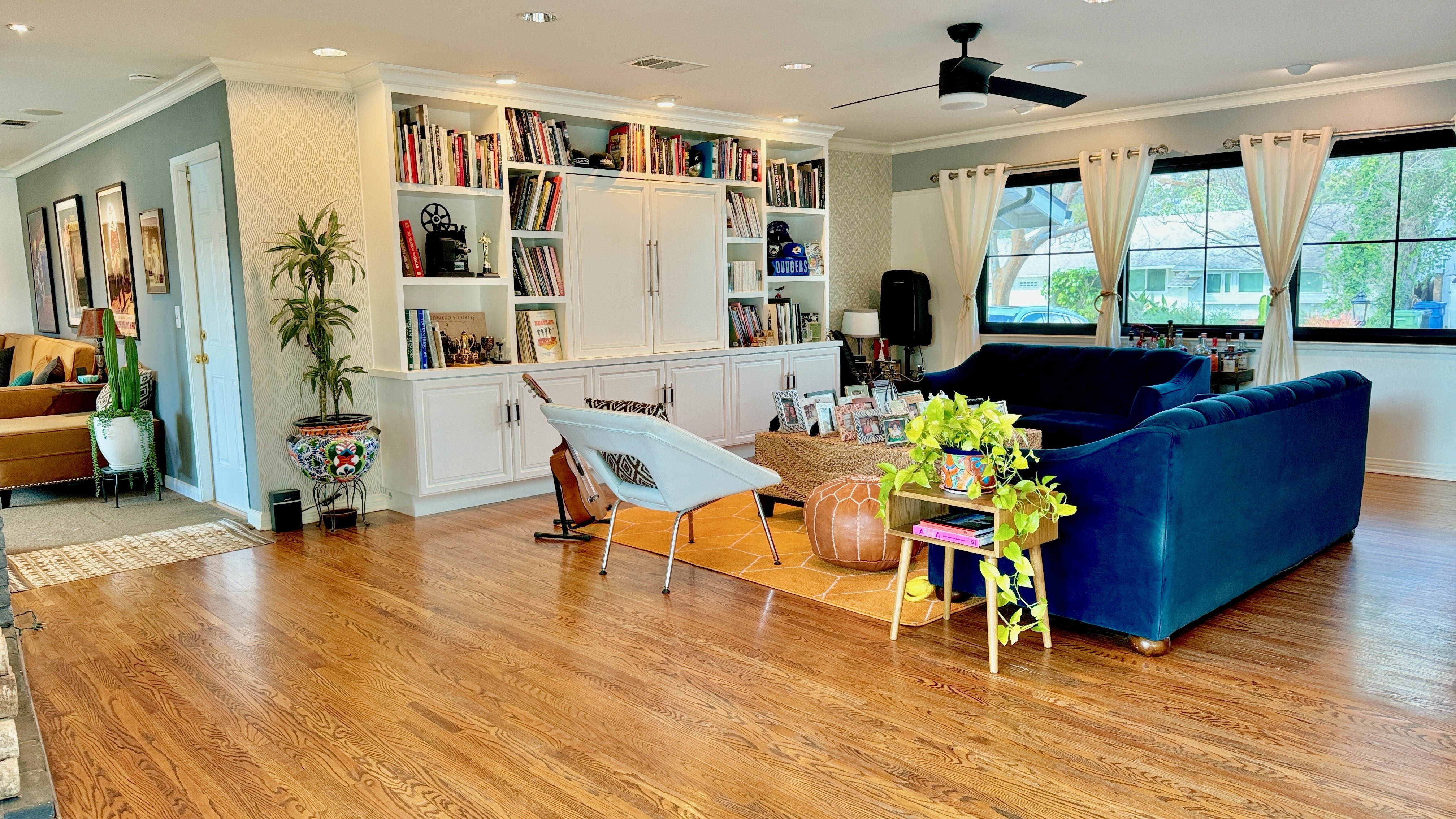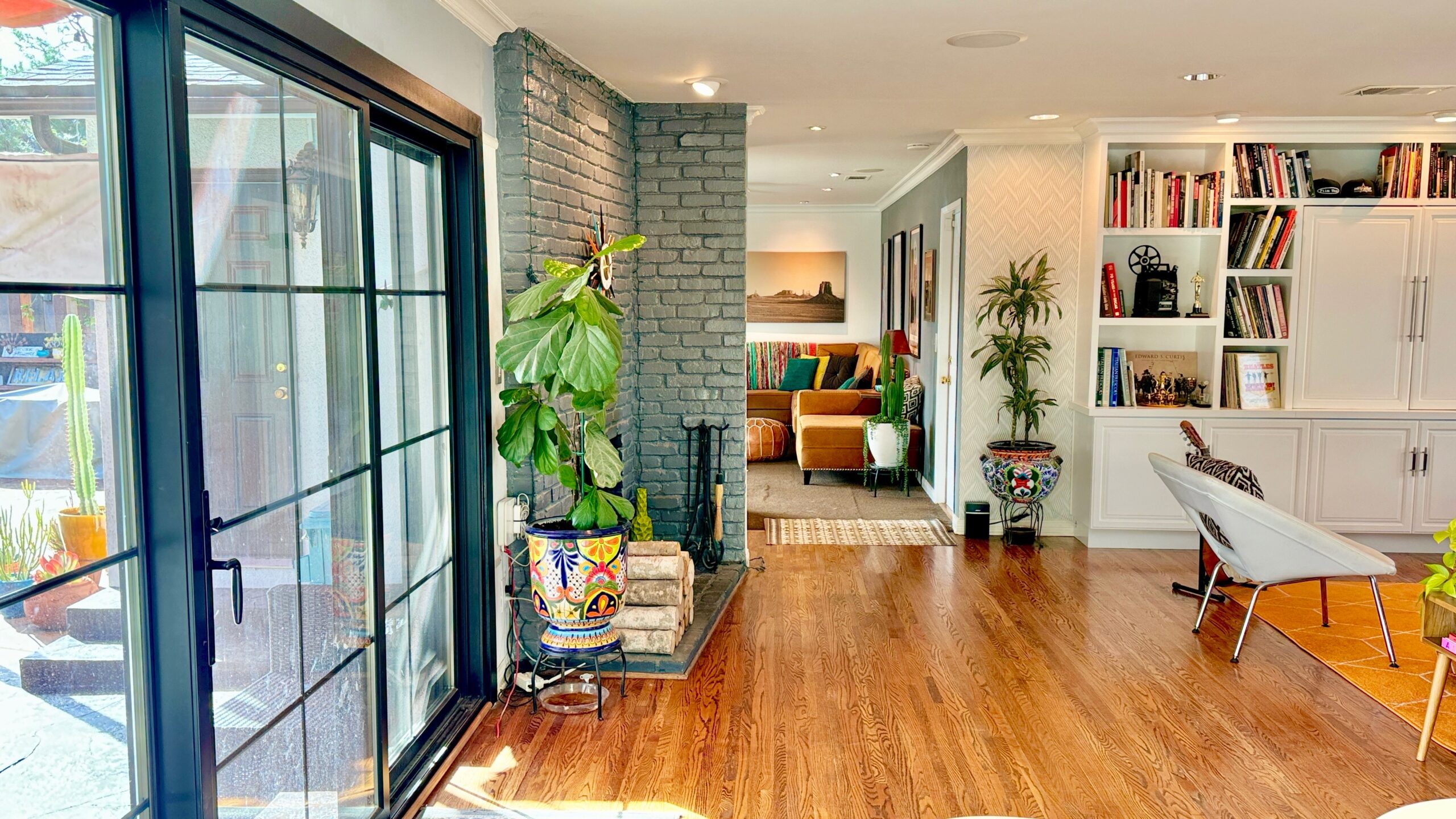 Hardwood FloorsCeiling FanRecessed LightingFireplaceFloor to Ceiling WindowsOpen ConceptSliding Glass Door
