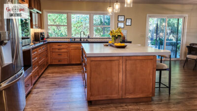 Hardwood FloorsPendantRecessed LightingStainless SteelTraditionalLight Color PaletteOther CabinetsBackyard viewIslandOpen ConceptSunny/Airy