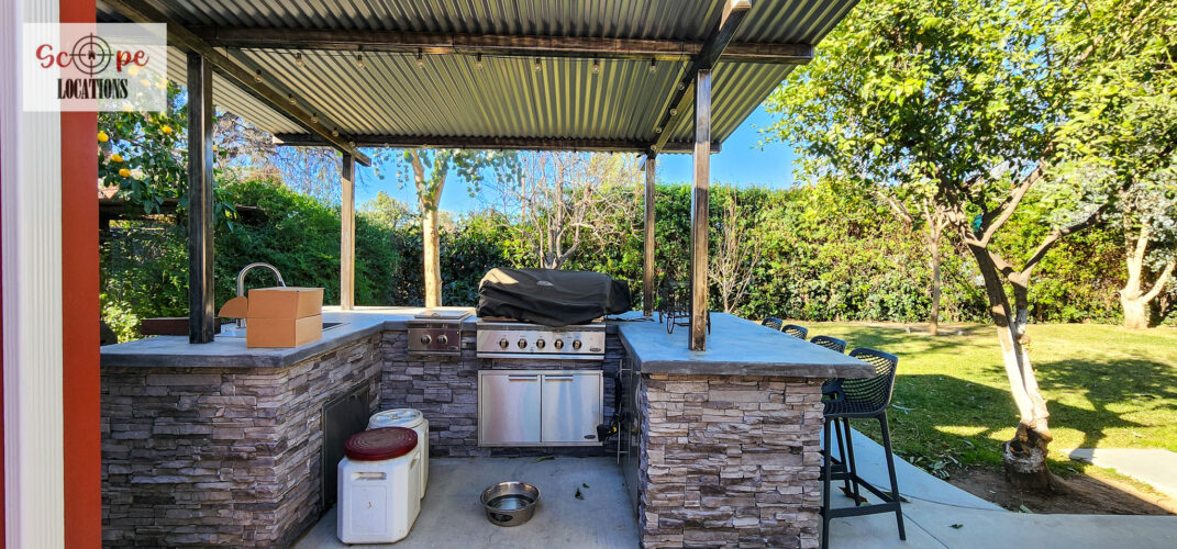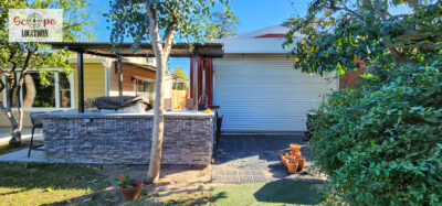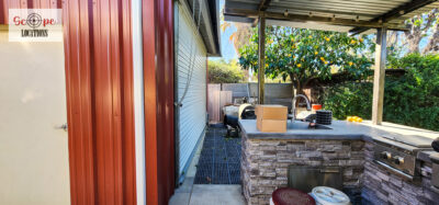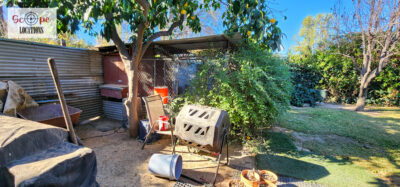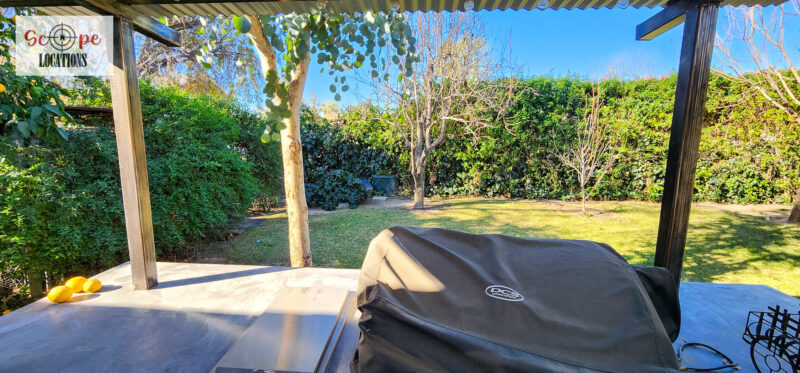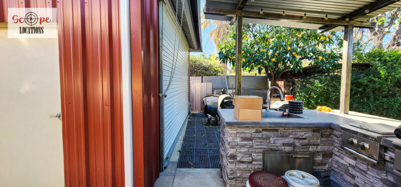 Built in BBQCovered PatioFruit TreesGatedOutdoor KitchenShedSitting AreaConcrete SlabDirtGrass - NaturalPavers