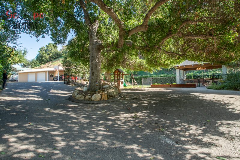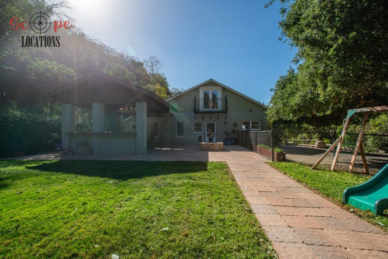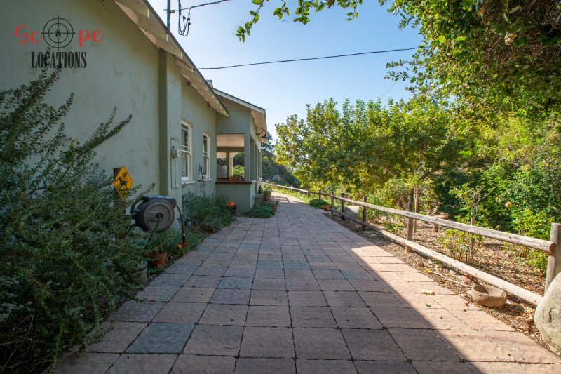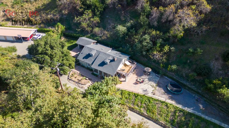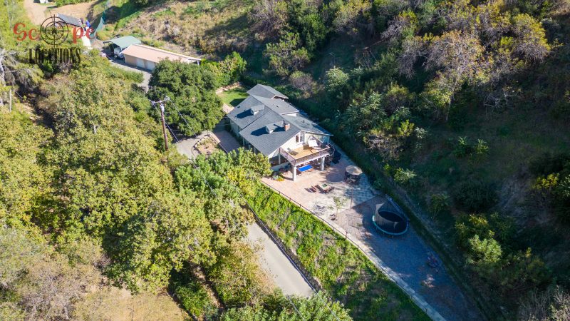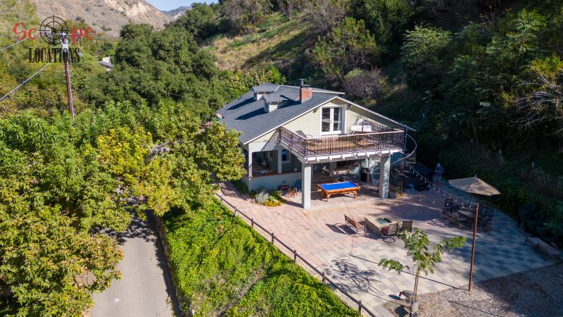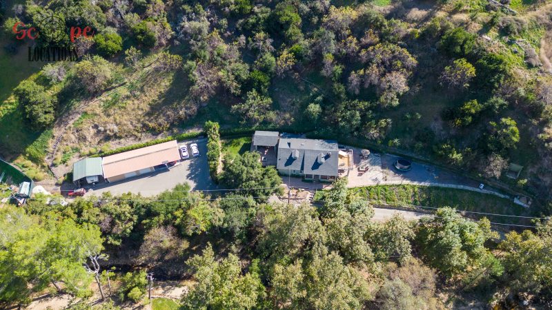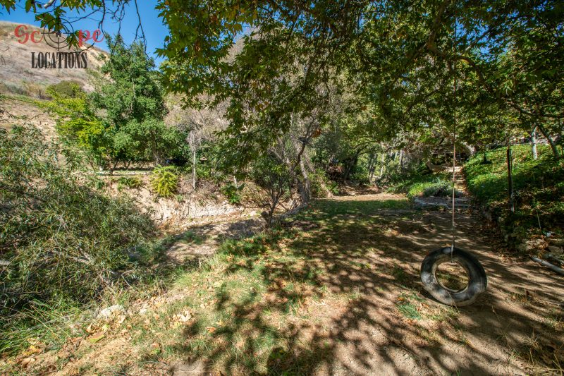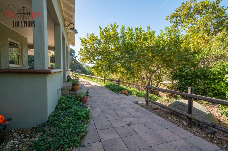 EXCLUSIVE: Secluded filming location surrounded by mature sycamore trees. Driveway crosses over Pole Creek and leads you to a park-like setting with a beautifully remodeled and charming 1950s style home perched atop the property.