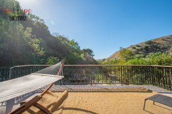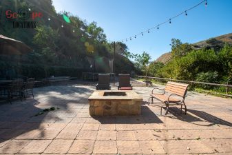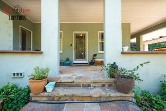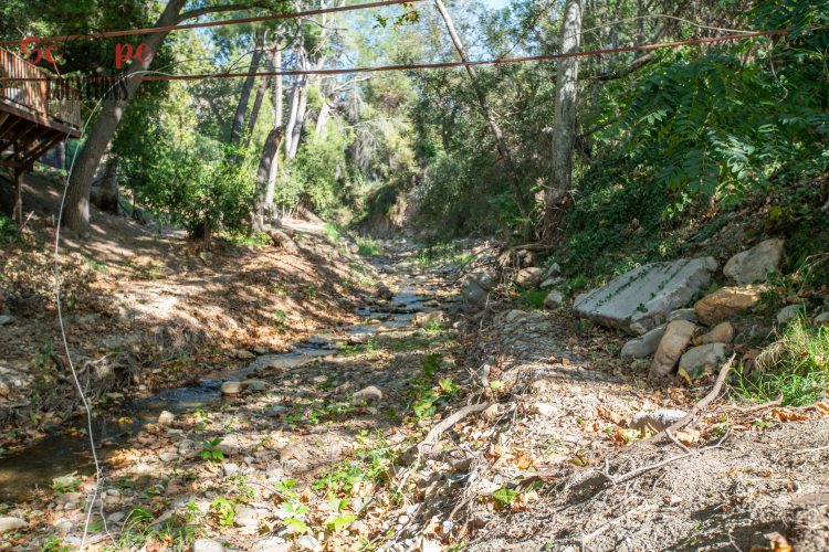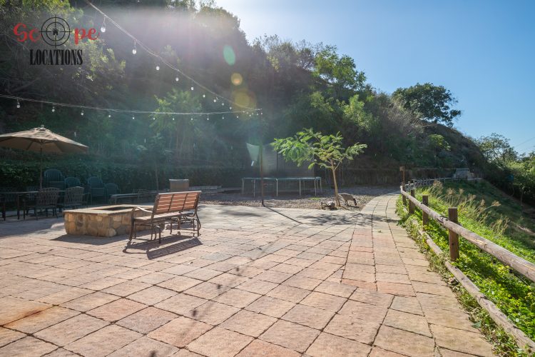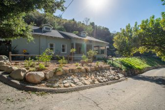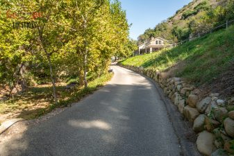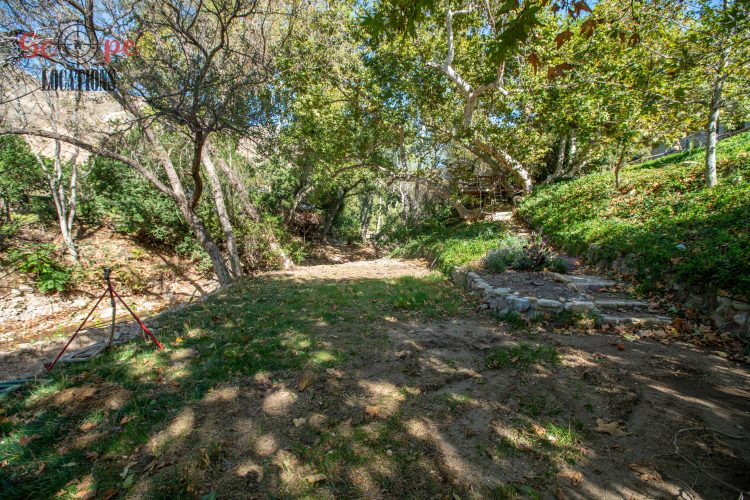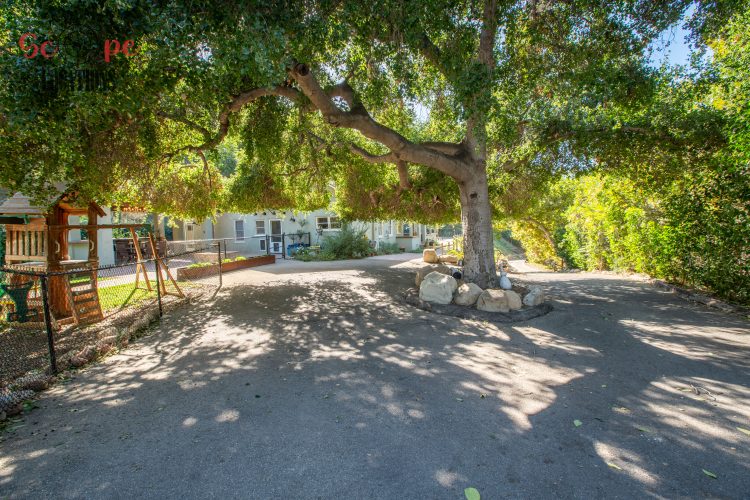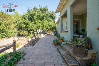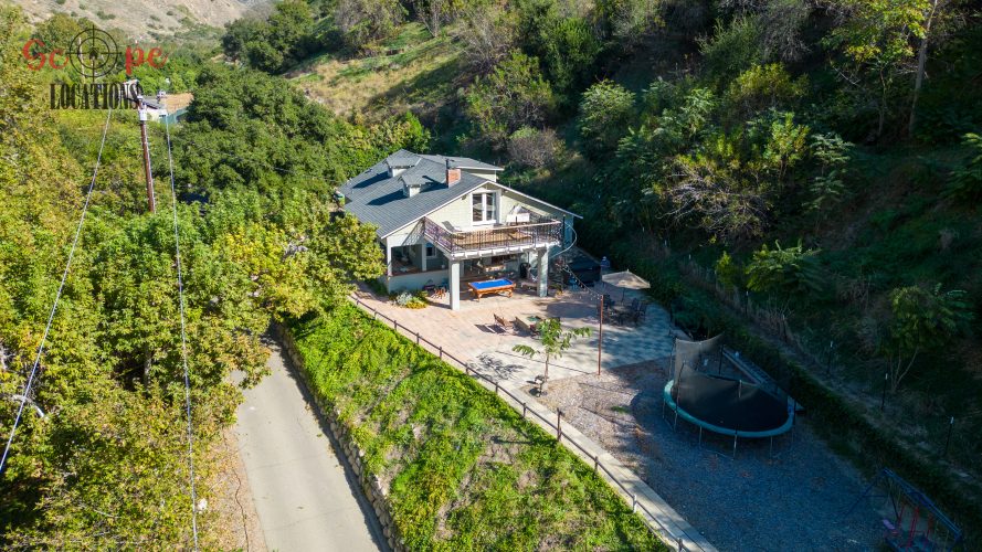 EXCLUSIVE: Secluded filming location surrounded by mature sycamore trees. Driveway crosses over Pole Creek and leads you to a park-like setting with a beautifully remodeled and charming 1950s style home perched atop the property.