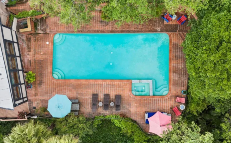 In 1959, a striking addition was built that leans fully into a mid‑century look. Clean lines, retro details, and large windows create an instant backdrop for photo and video. Step into the backyard and you’re suddenly in a different world: a full‑size 70s‑feeling sports pool, spa, and large entertaining area that has an incredible, relaxed vibe. The backyard feels like you’re nestled in the woods, with greenery and privacy that make it easy to forget you’re in the city.