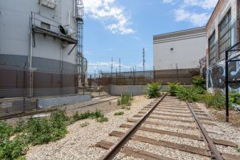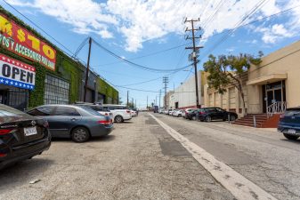 Discover over 14,000 square feet of versatile production space. Back area features rustic train tracks, evoking a nostalgic charm perfect for any production shoot. The exterior showcases a black stucco facade adorned with climbing vines, accentuated by two spacious roll-up doors and large windows framed in black grids. Step inside to find a captivating interior characterized by a dome ceiling with exposed wood and beams, enhanced by multiple skylights that infuse the space with natural light.