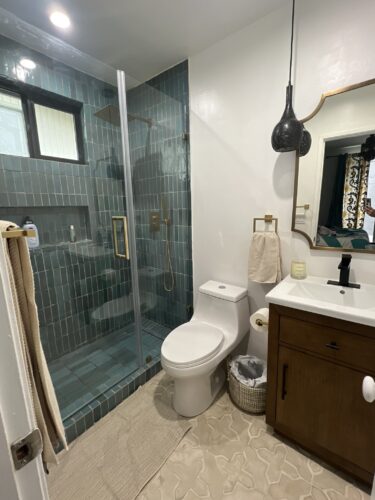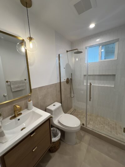 Tile FloorsPendantRecessed LightingShower OnlySingle SinkTiled Walls