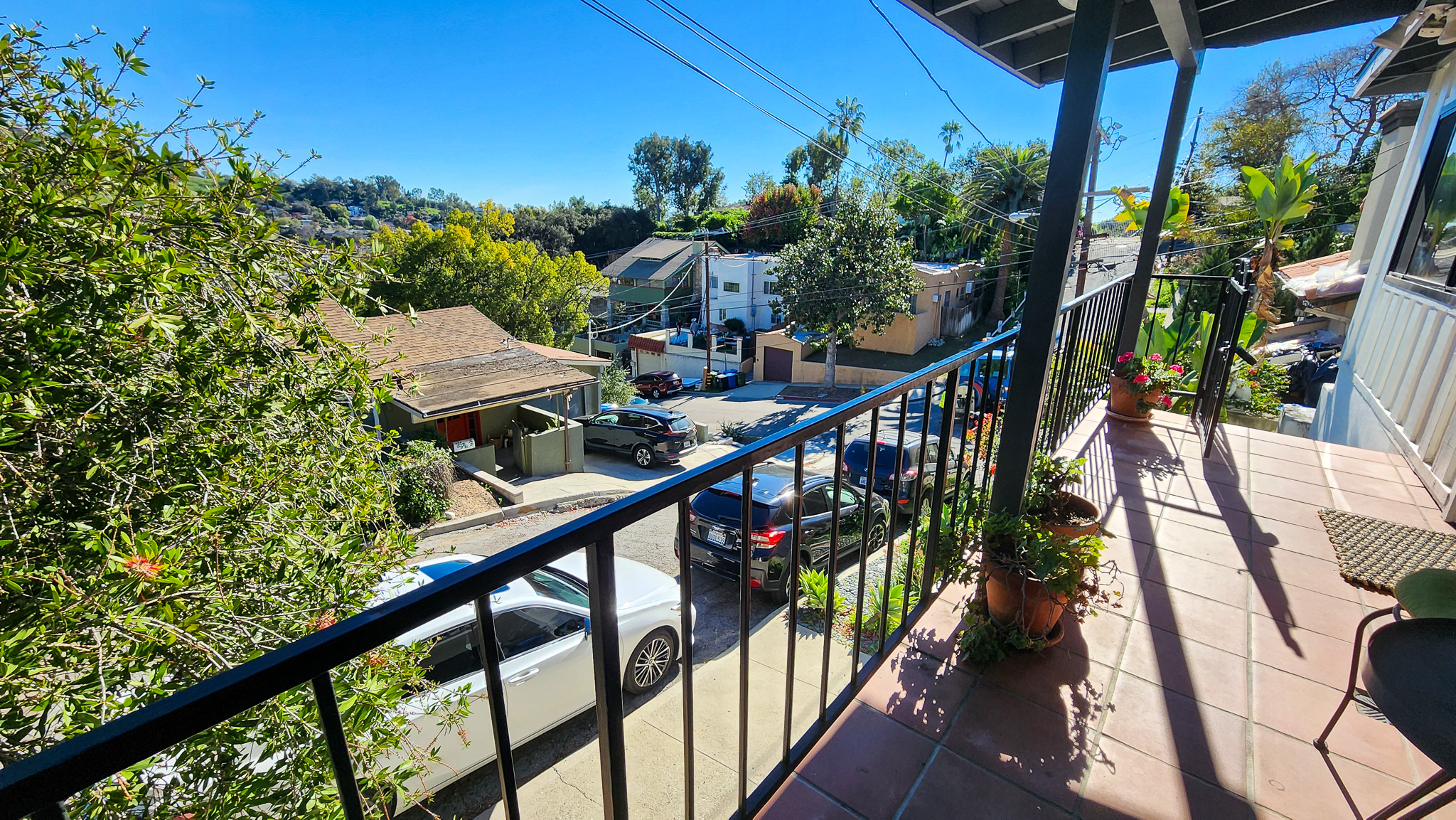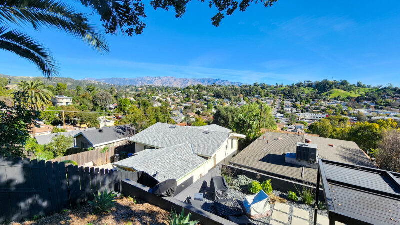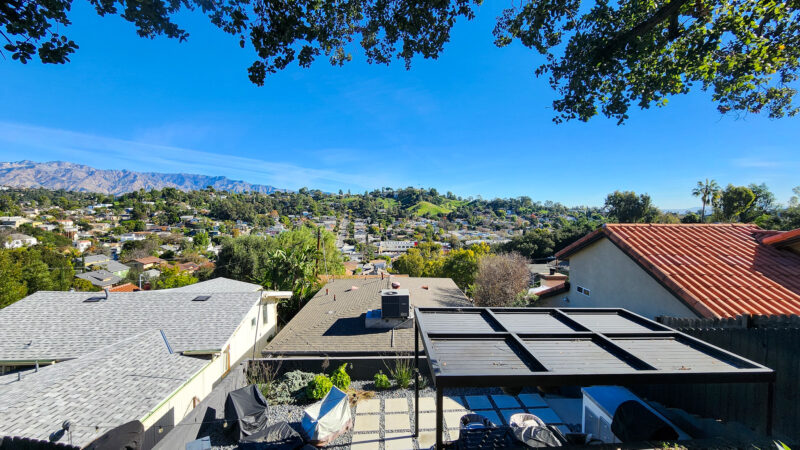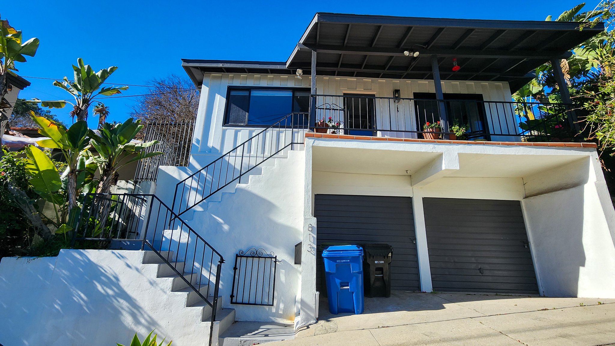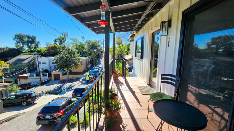 3 bedroom, 2 bath newly remodeled mid century modern home with balcony entrance (front door) and 2 level outdoor patios with views of hills and mountains.