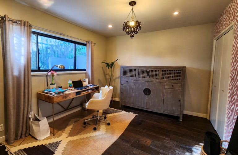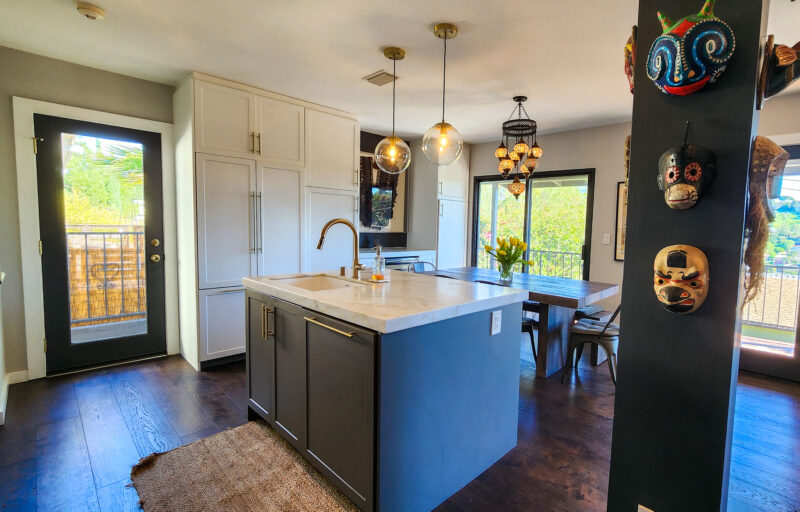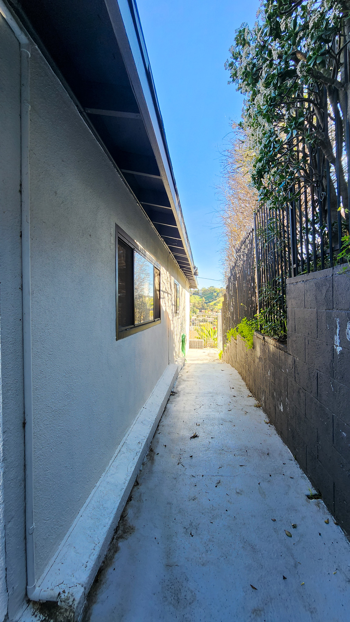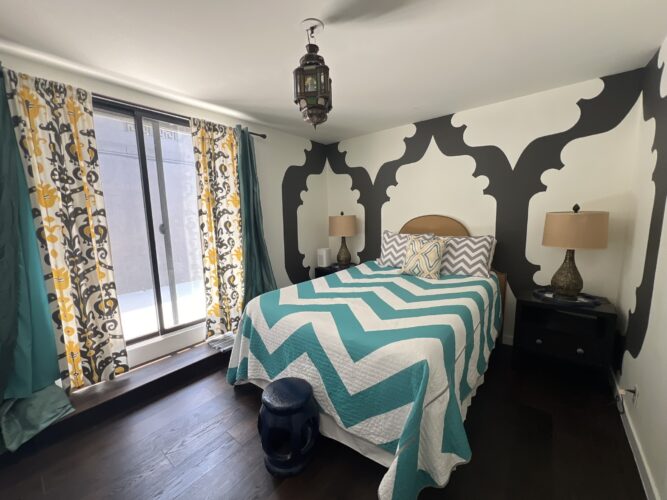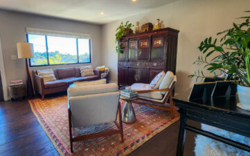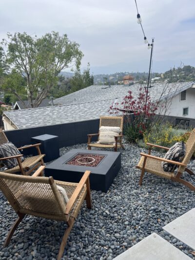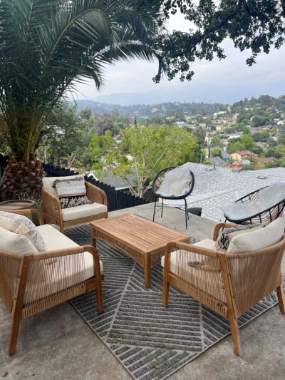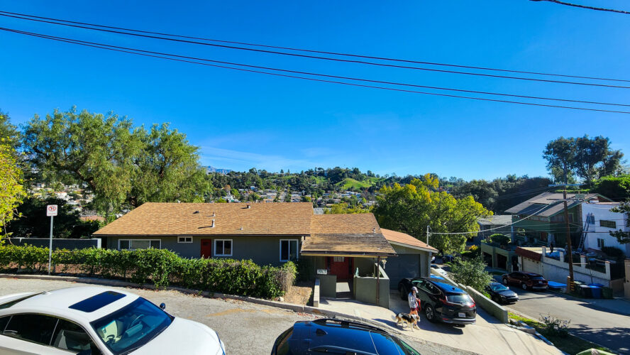 3 bedroom, 2 bath newly remodeled mid century modern home with balcony entrance (front door) and 2 level outdoor patios with views of hills and mountains.