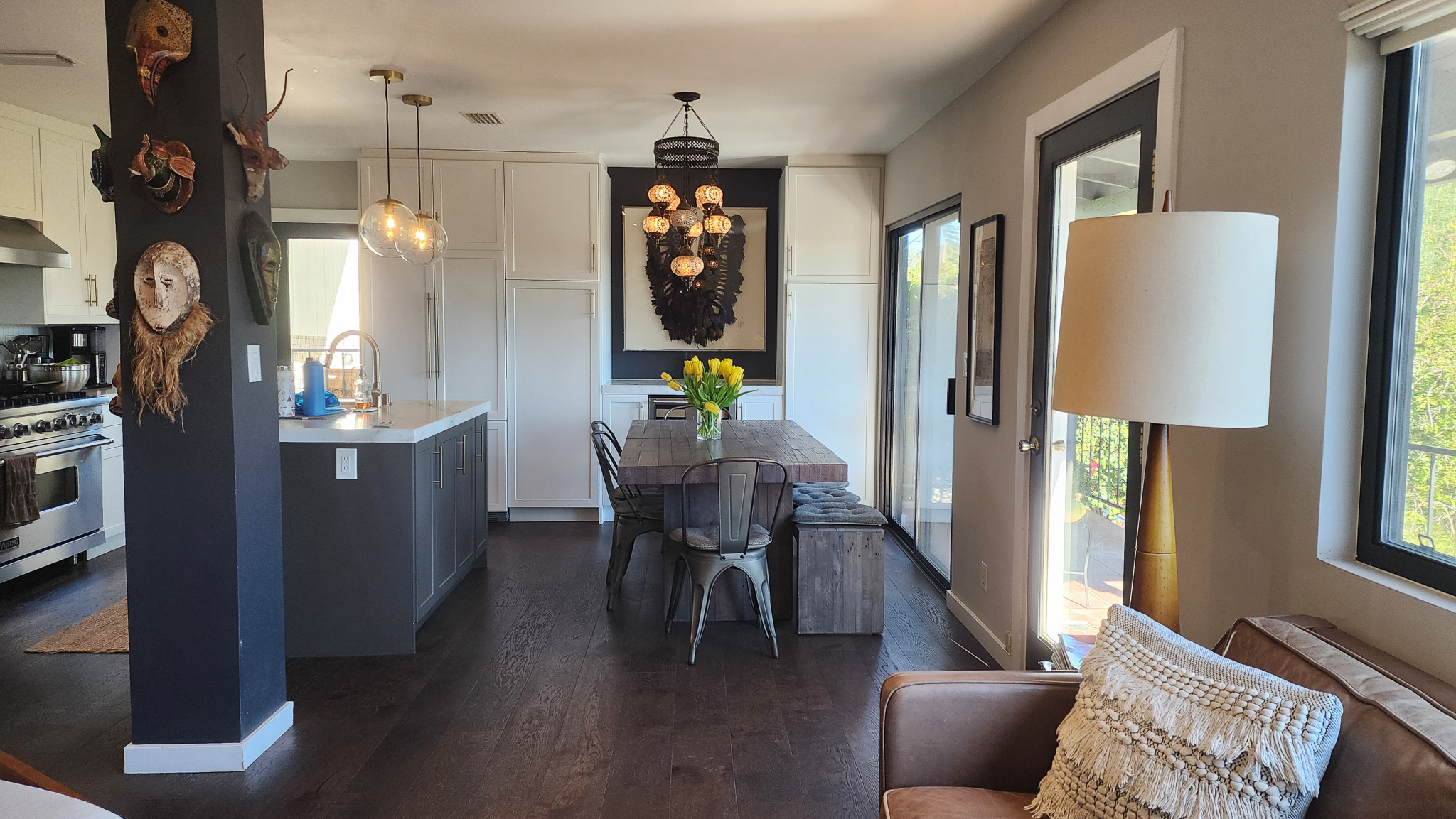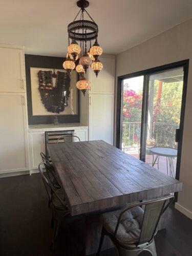 Hardwood FloorsChandelierOpen ConceptSliding Glass Door