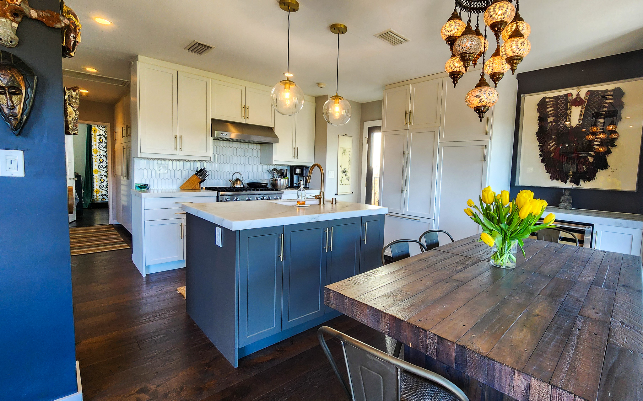 Hardwood FloorsPendantRecessed LightingStainless SteelModern/contemporaryLight Color PaletteAccent/Featured WallWhiteOpen ConceptSunny/Airy