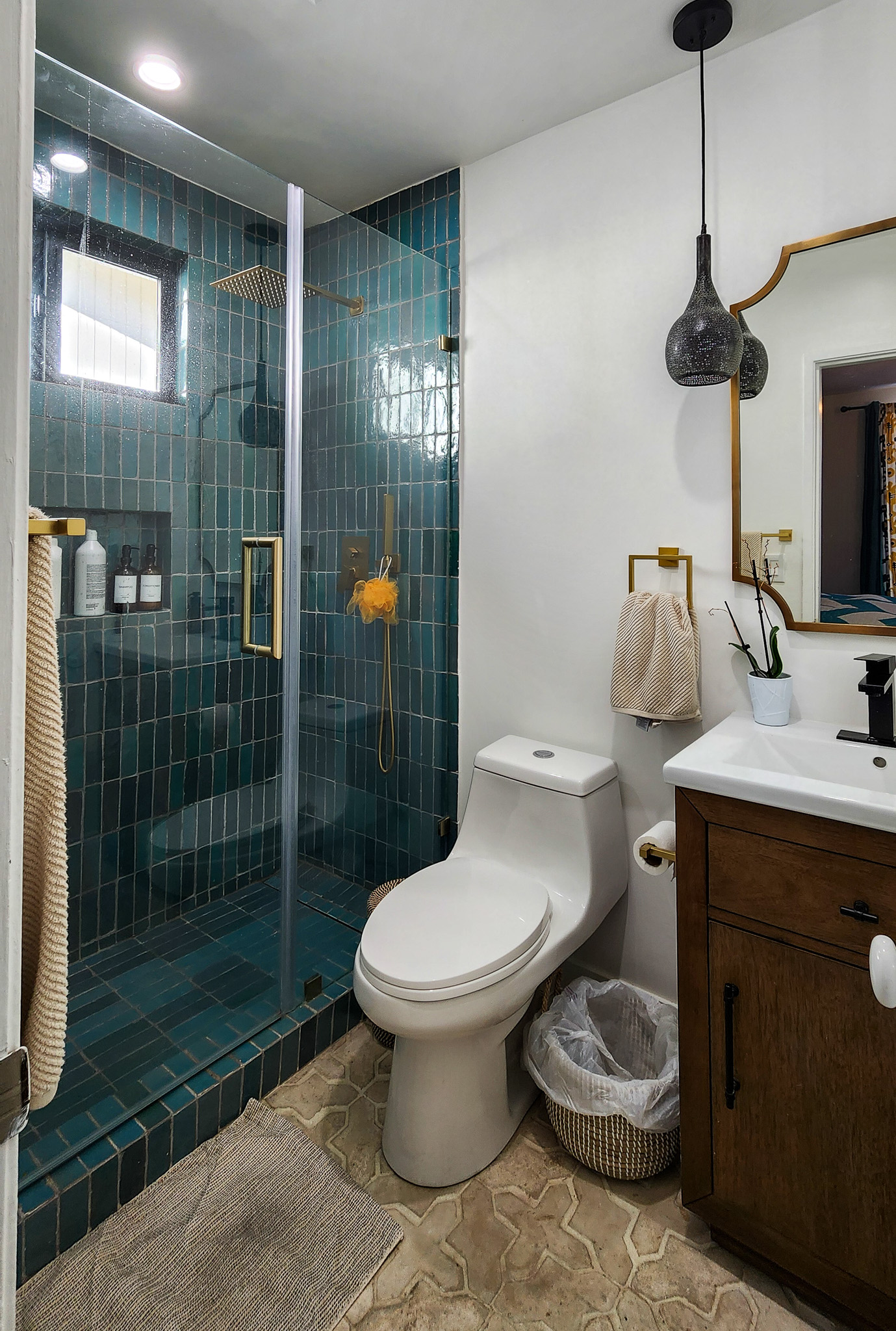 Tile FloorsPendantRecessed LightingGlass Shower EnclosureShower OnlySingle Sink