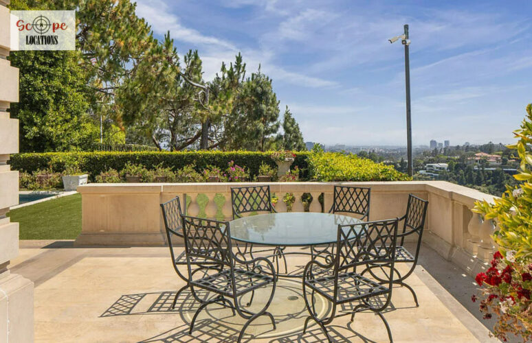 Overview: This magnificent Chateau in lower Bel Air, inspired by Le Petit Trianon in Versailles, seamlessly blends French refinement with breathtaking Los Angeles city and ocean vistas. Boasting grand interiors, extensive outdoor spaces, and unique amenities, this estate offers a sophisticated and visually stunning backdrop for film productions.