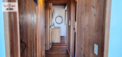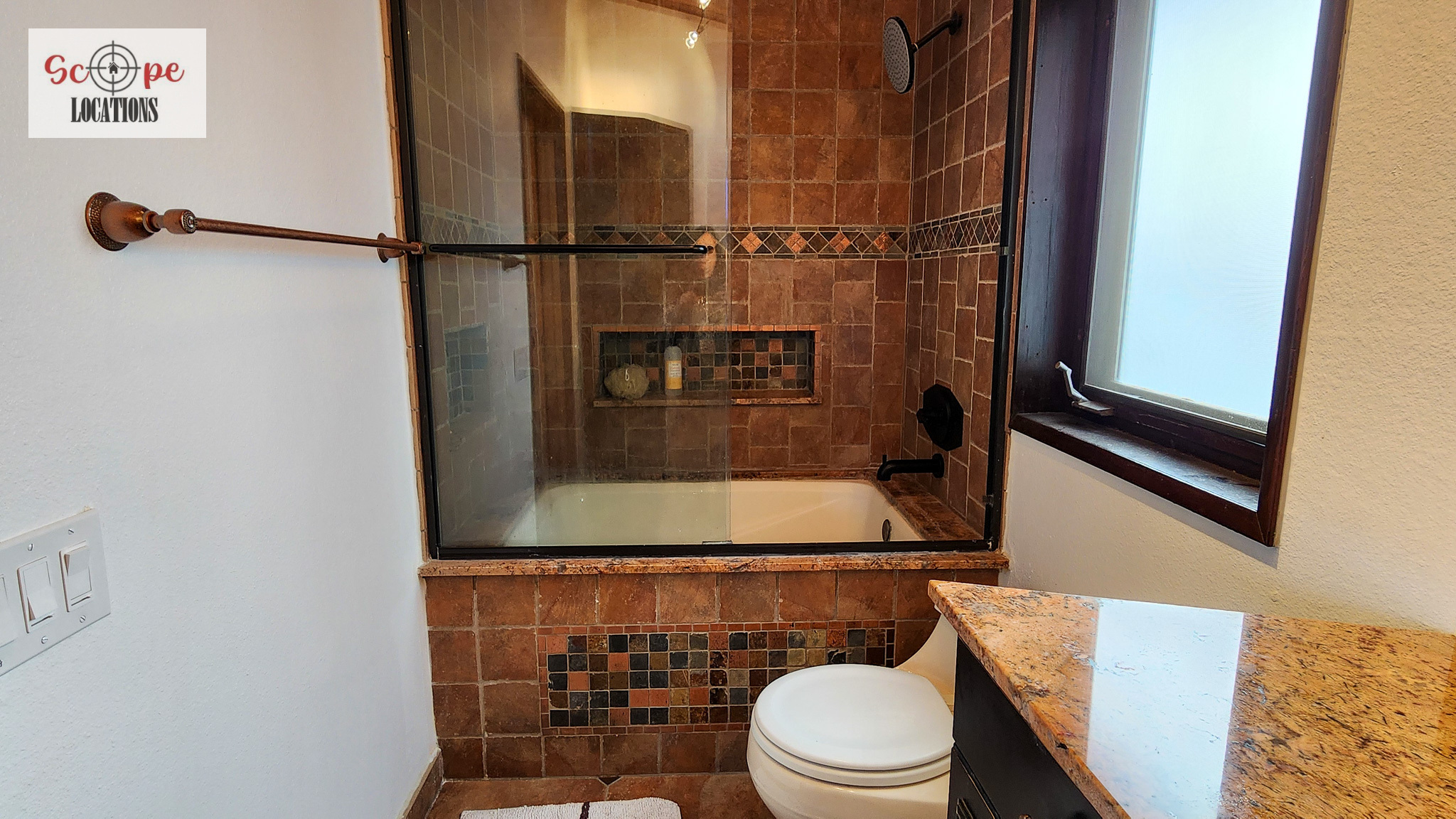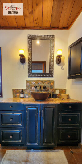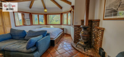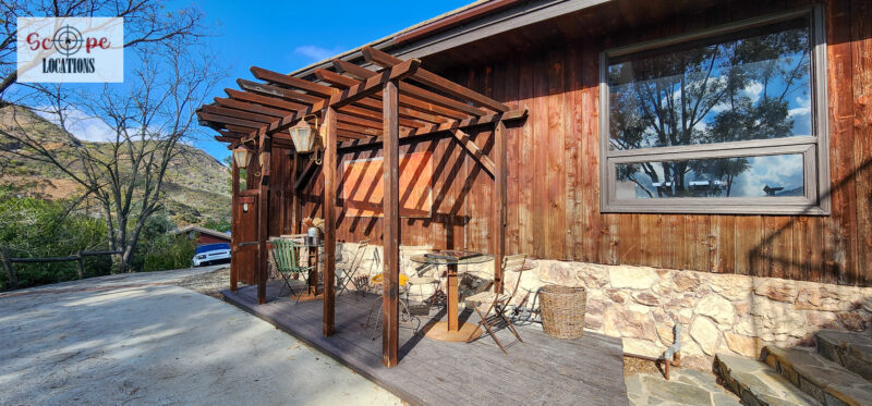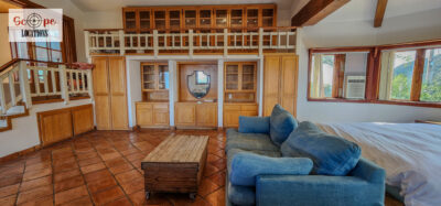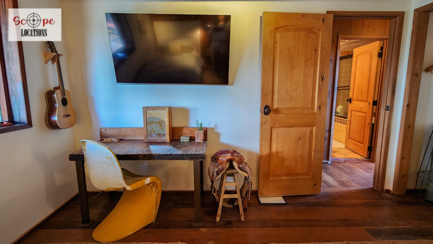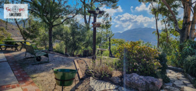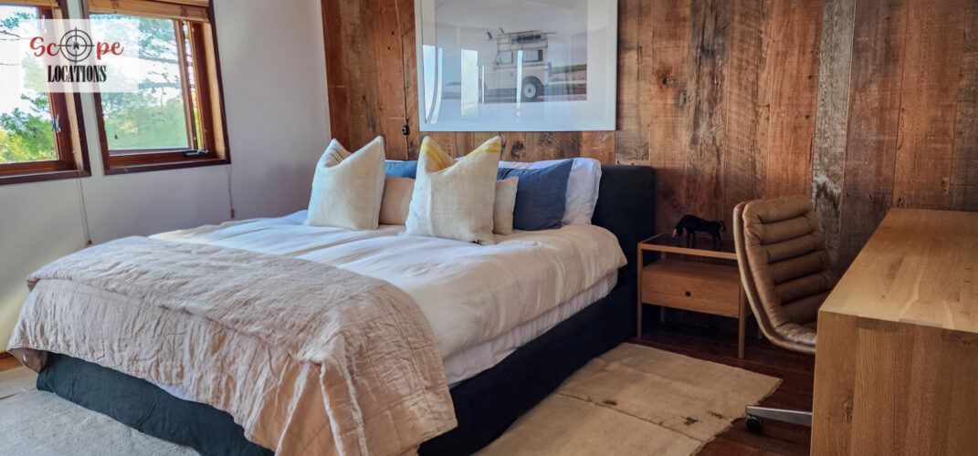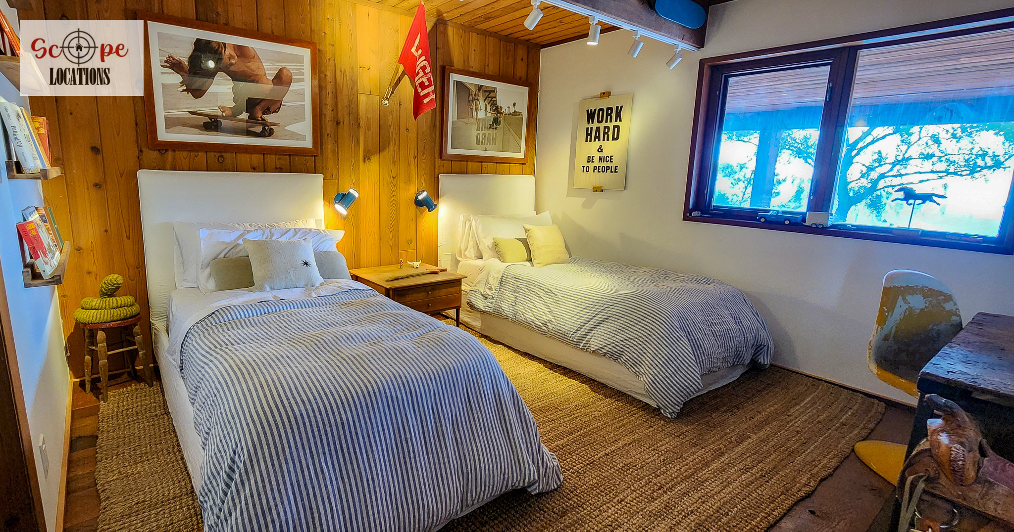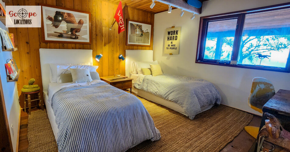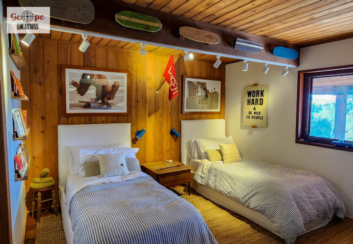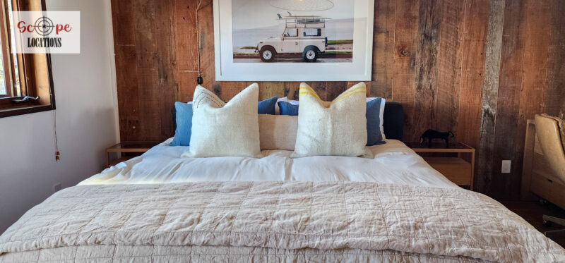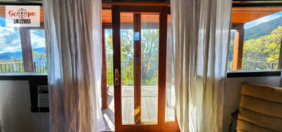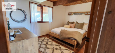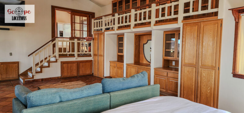 - One en-suite bedroom upstairs with a private patio and ocean views through the mountains.