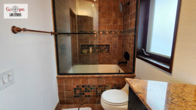 - One en-suite bedroom off the living room with access to the wrap-around deck.