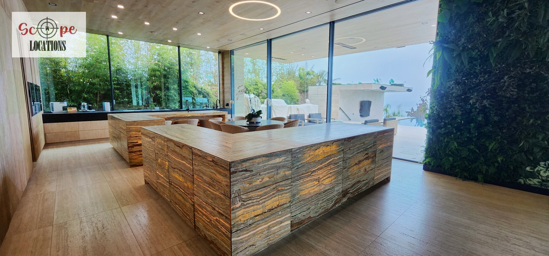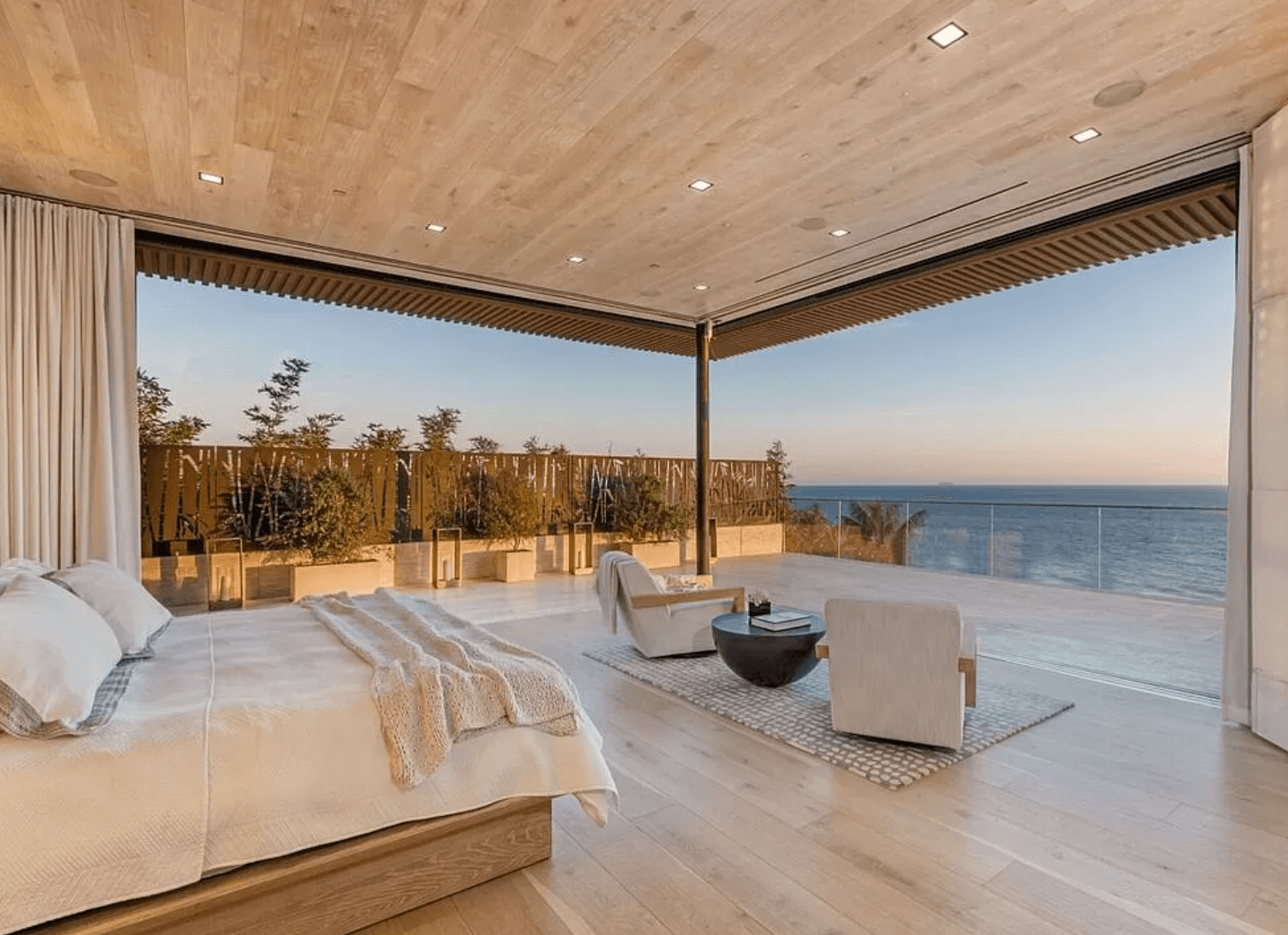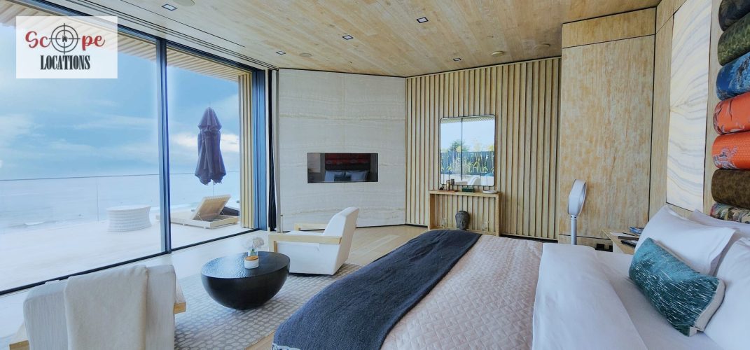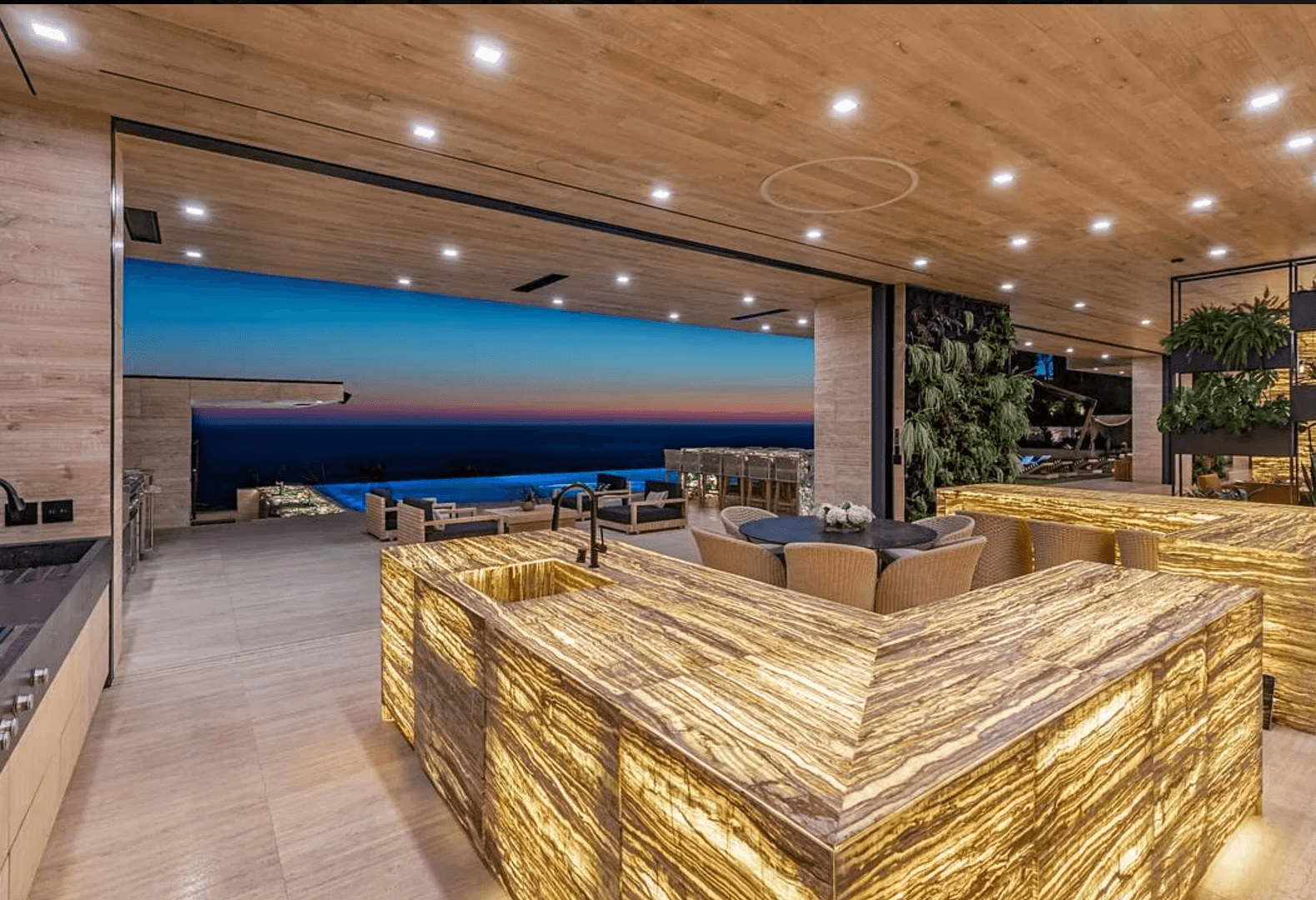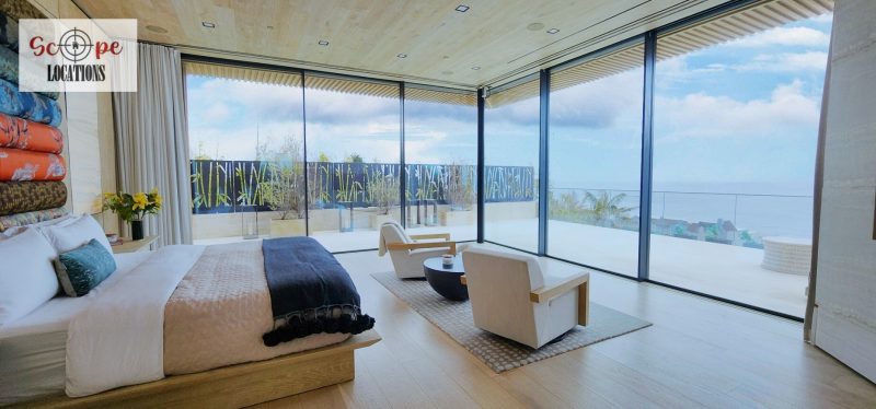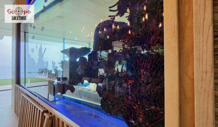 Nestled on over 1 acre of scenic Malibu landscape, this modern marvel presents an impressive 95′ tiled pool overlooking the vast expanse of the Pacific Ocean. Constructed in 2022, this exquisite compound is situated at the end of a secluded gated driveway, ensuring unparalleled privacy. Each room within this magnificent residence offers breathtaking vistas and awe-inspiring design. Automated floor-to-ceiling frameless glass pocket doors seamlessly integrate indoor and outdoor spaces, inviting residents to immerse themselves in the panoramic views and refreshing ocean breeze. Custom-crafted features adorn every corner of the home, including hand-carved stone and wood walls, a striking 2,000-gallon aquarium, backlit Onyx accents, living walls, and a tranquil koi pond. Boasting 6 bedrooms, each with its own private outdoor terrace, this home provides ample space for relaxation and enjoyment. Additional amenities include a state-of-the-art home theater, a dynamic game room, a grand piano, two interior bars, a swim-up bar, and a central seating area with a cozy firepit nestled amidst the shimmering waters of the pool. Two expansive 4-car garages equipped with electric car charging stations, along with ample guest parking, complete this unparalleled Malibu retreat.