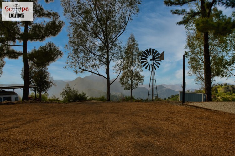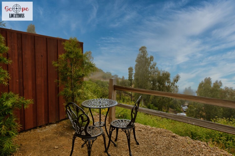 For culinary scenes, the ranch features a fully equipped chef’s kitchen, perfect for gourmet cooking setups. Additionally, a yoga suite perched atop the mountain offers fantastic views of the surrounding Malibu mountains, creating an ideal setting for wellness and meditation shoots.