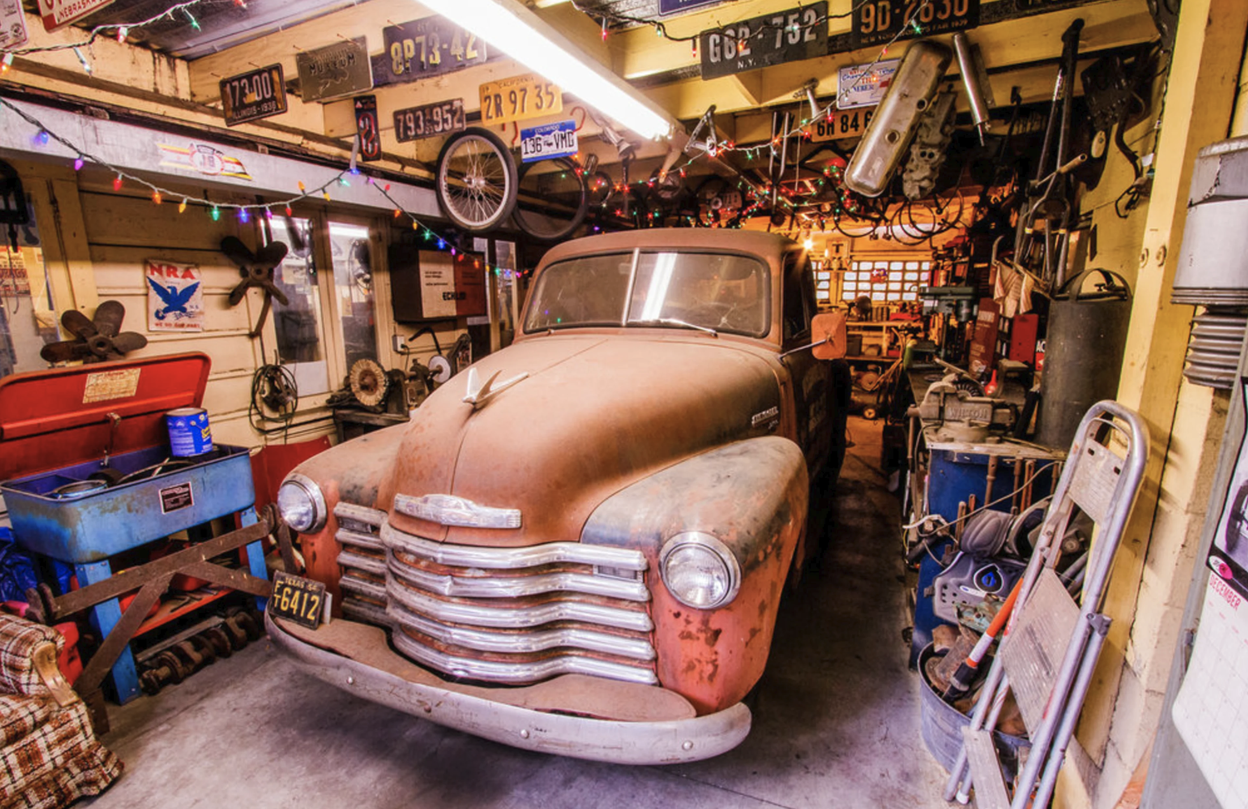 Located in the Toluca Lake area of North Hollywood, our location is a collection of three garage/auto restoration/auto workshop spaces that were built in 1935 and have been in use ever since. The big garage, alone, offers 2,200 sq ft of space. A full assortment of period tools, machinery, work benches and car parts are on site and for use with any production. In addition, a collection of vintage cars and trucks from the 1920s to the 1970s are also on site and for use with any production. Along with the garage areas is the main house which is a 1935 Spanish ranch that is a time capsule property featuring period furniture and zero modern upgrades.