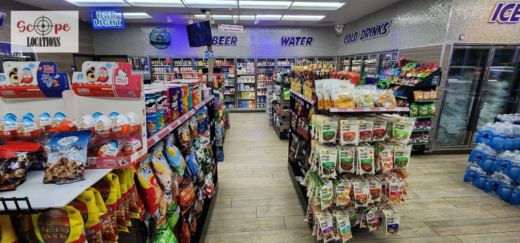 EXCLUSIVE: This corner gas station offers a versatile filming location with a mini-mart and a convenient self-serve car wash. The mini-mart boasts a modern interior with wood-like tile floors, creating a clean and contemporary atmosphere. Inside, wall-to-wall glass door beverage refrigerators showcase a variety of refreshments, while a large checkout counter provides a central hub for transactions. Meticulously organized merchandise adds to the store’s well-kept appearance, making it an ideal setting for various scenes.