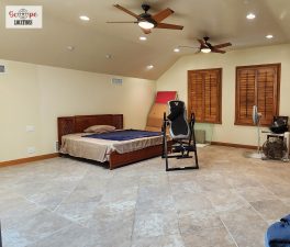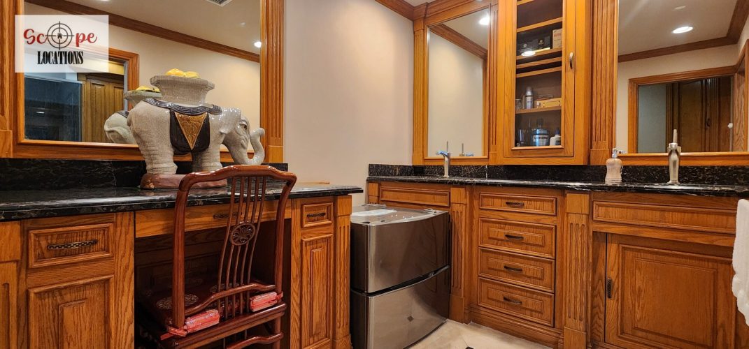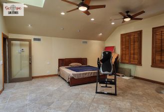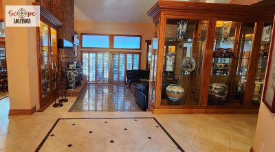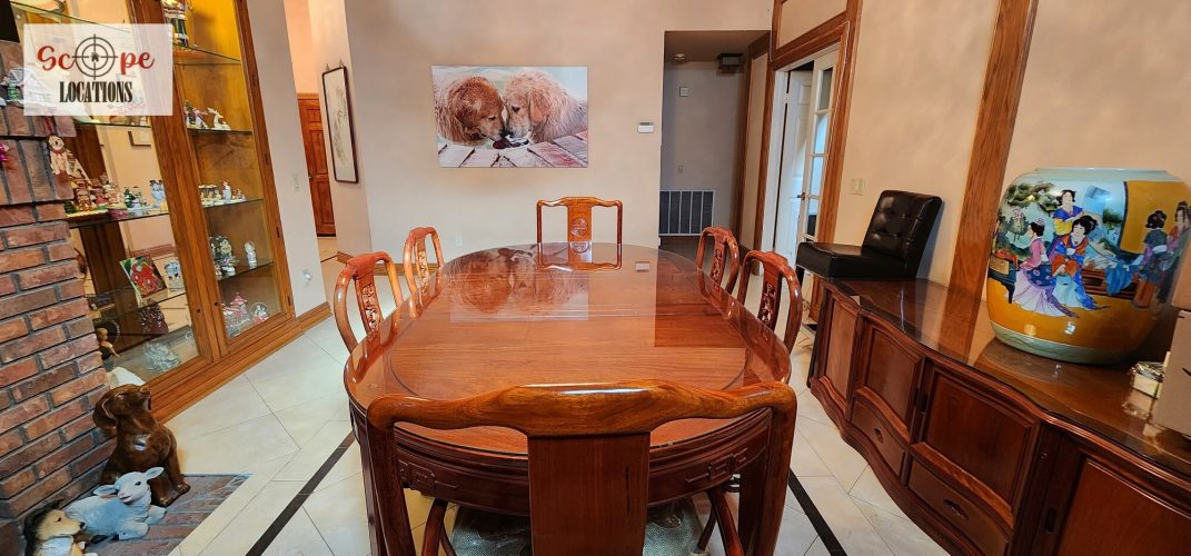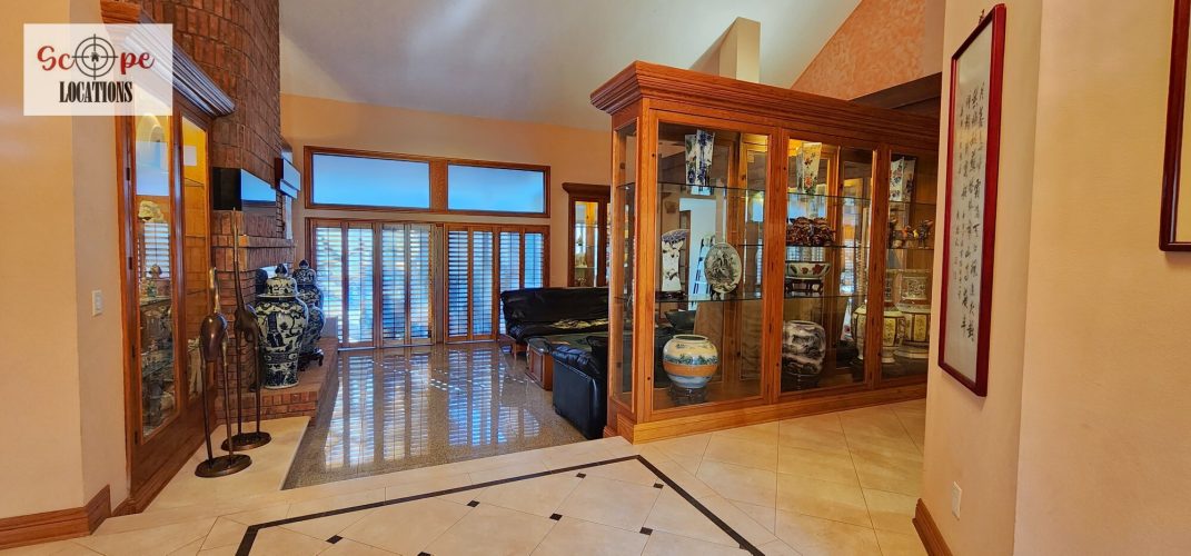 EXCLUSIVE: Nestled on a spacious lot, this 5000 sq foot California tract-style home boasts a unique facade that sets it apart. The double-door step-up entry welcomes you into a distinctive interior with two wings featuring cathedral ceilings.
