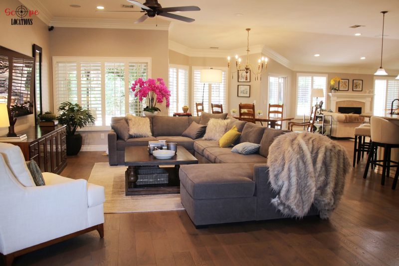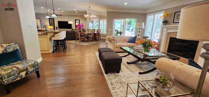 EXCLUSIVE: Nestled at the end of a tranquil cul-de-sac, this expansive 3,200 sq ft single-story home offers a picturesque filming location on an impressive 18,821 sq ft lot. The open floorplan welcomes guests with an elegant entry leading to a spacious living room, dining room, and family room, boasting high ceilings and gleaming hardwood floors throughout.