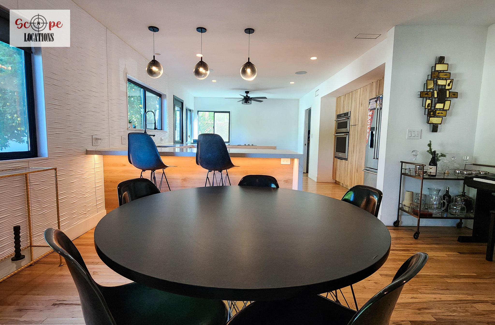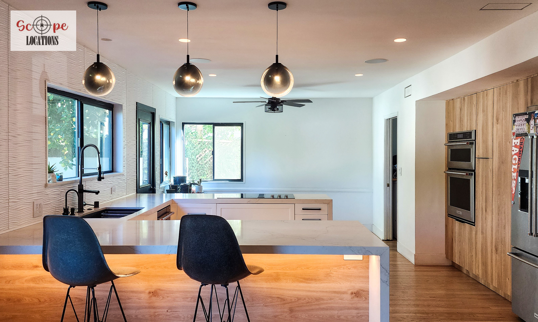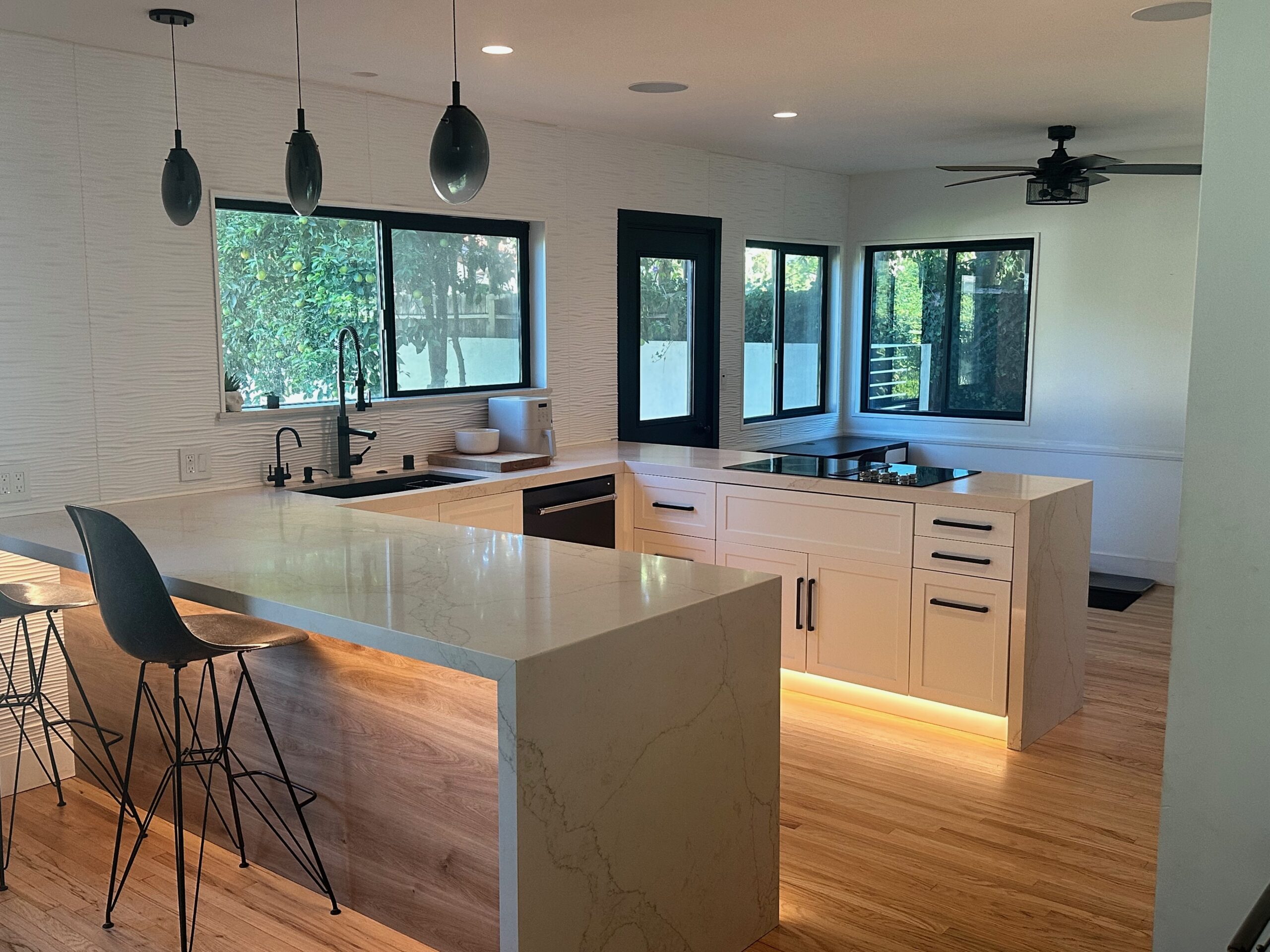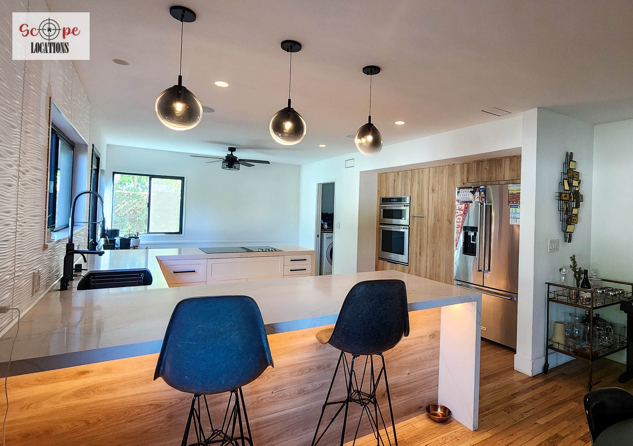 Hardwood FloorsRecessed LightingWhiteStainless SteelModern/contemporaryLight Color PaletteAccent/Featured WallWhiteBackyard viewHigh CeilingsOpen ConceptSunny/Airy