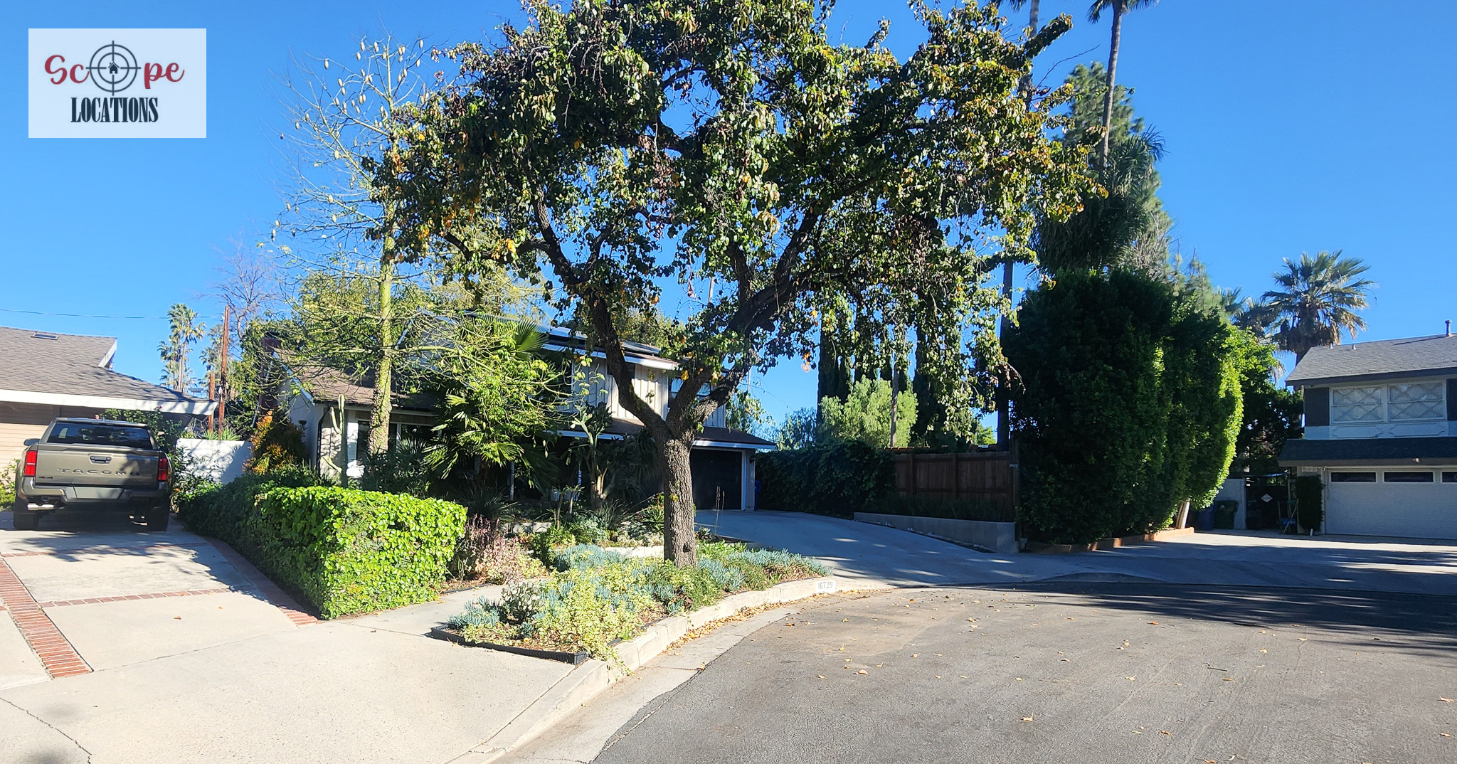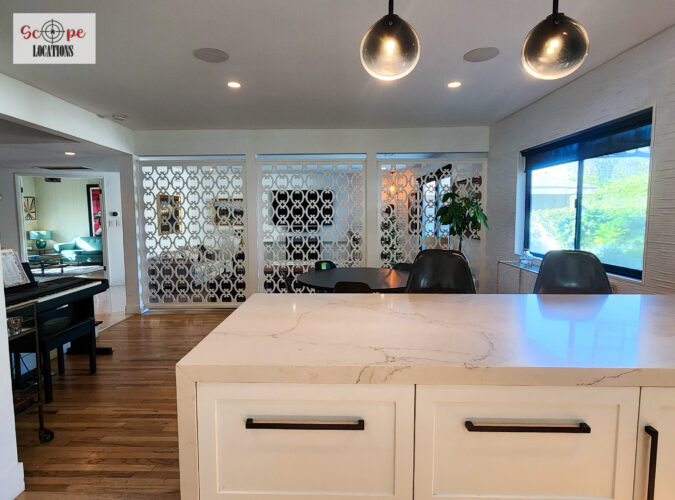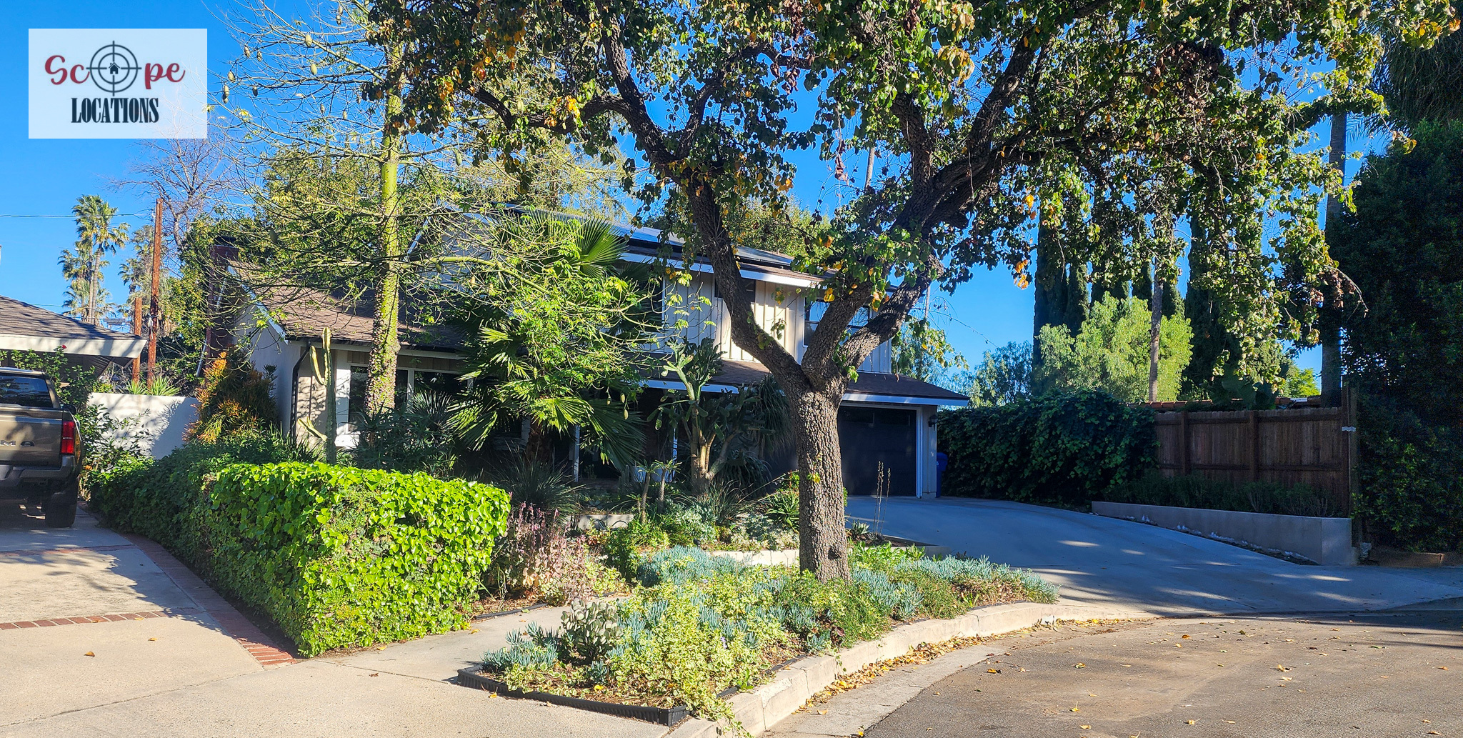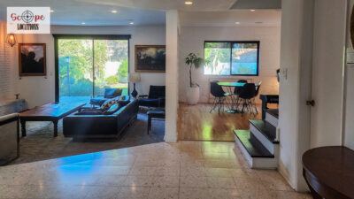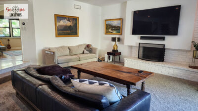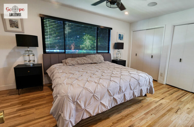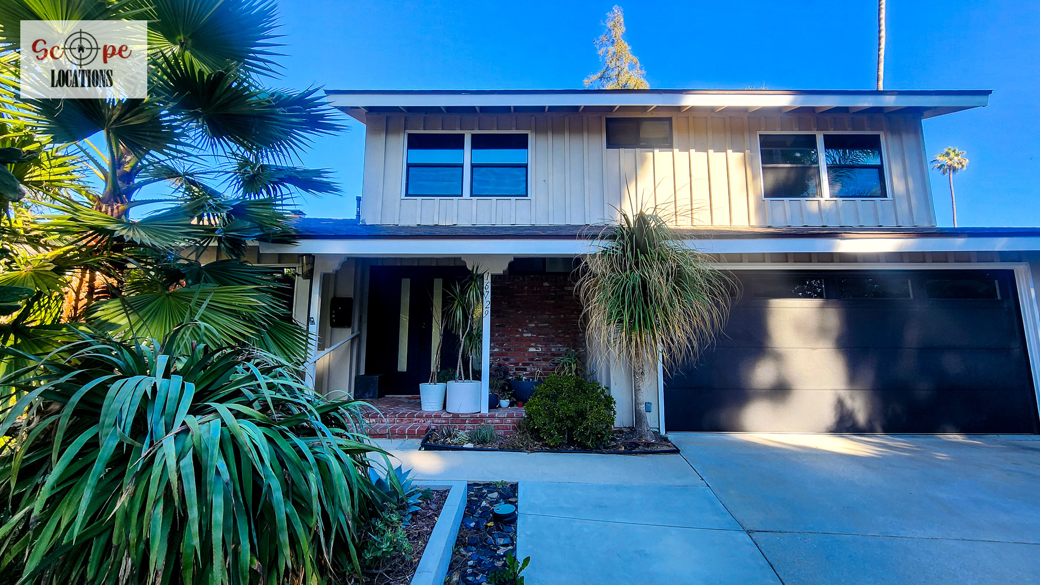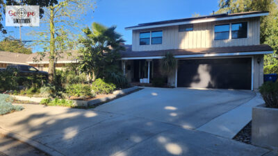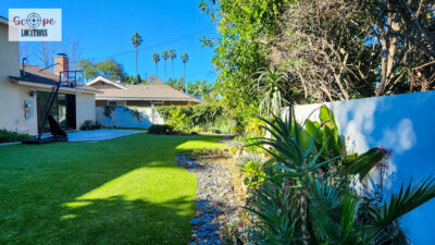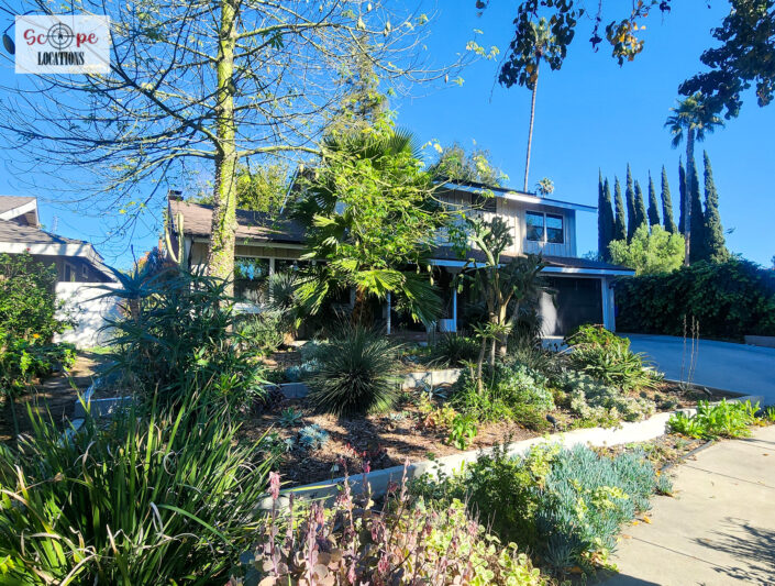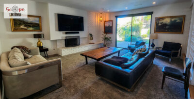 Completely remodeled with a new modern kitchen, sunken living room, mid-century modern furniture, large backyard, and lush landscaping. Located in a cul-de-sac with lots of street parking.