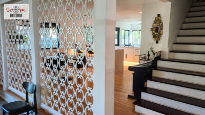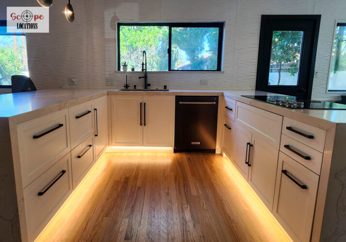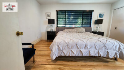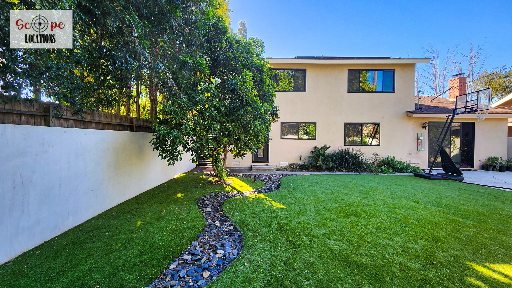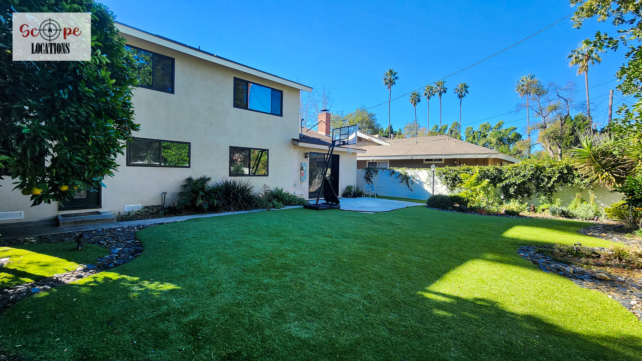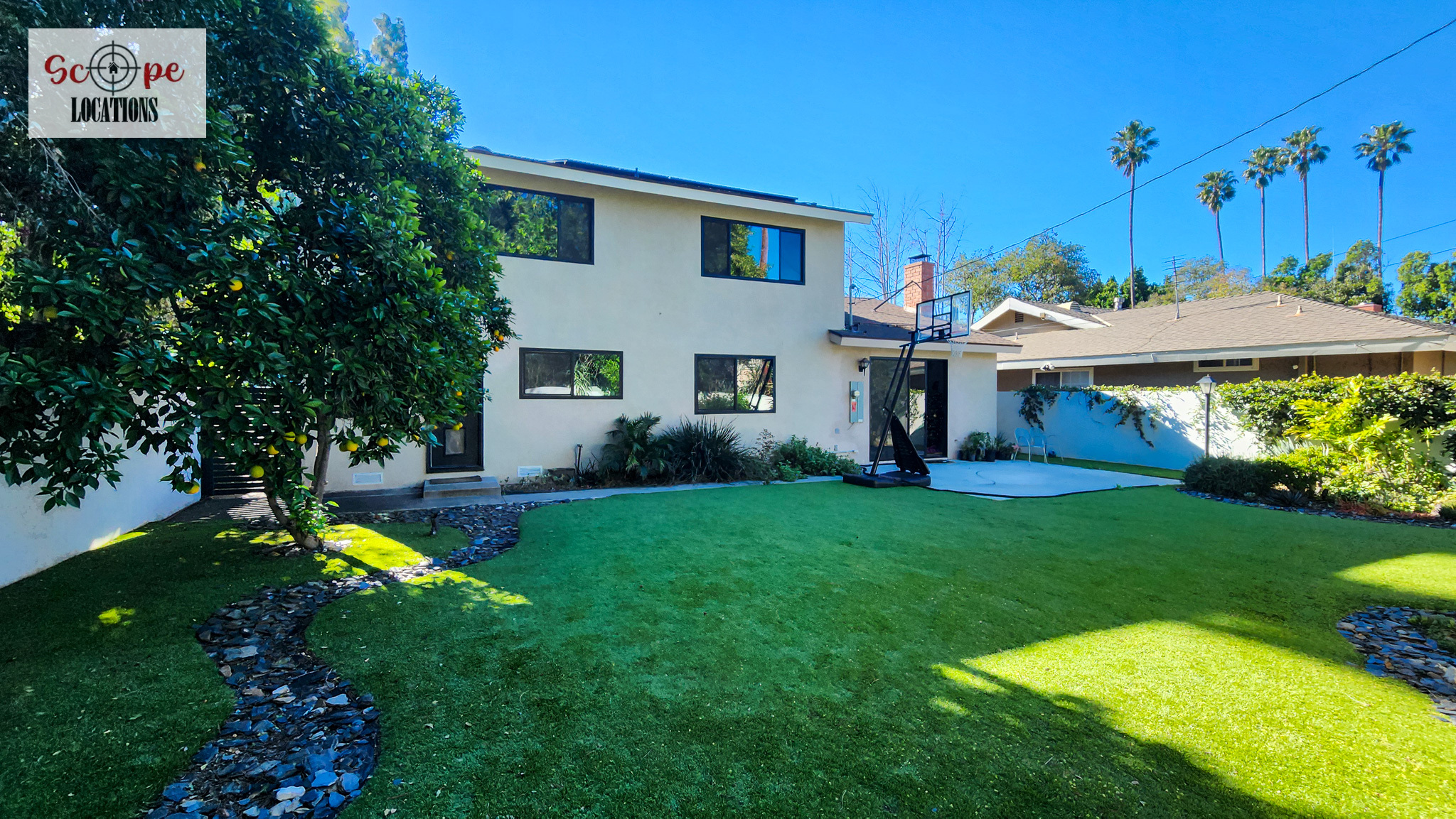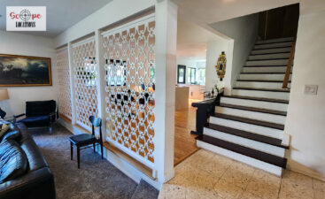 Completely remodeled with a new modern kitchen, sunken living room, mid-century modern furniture, large backyard, and lush landscaping. Located in a cul-de-sac with lots of street parking.