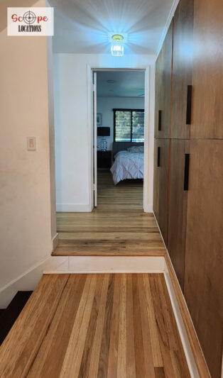 Hardwood FloorsRecessed LightingMid-Century ModernLight Color Palette