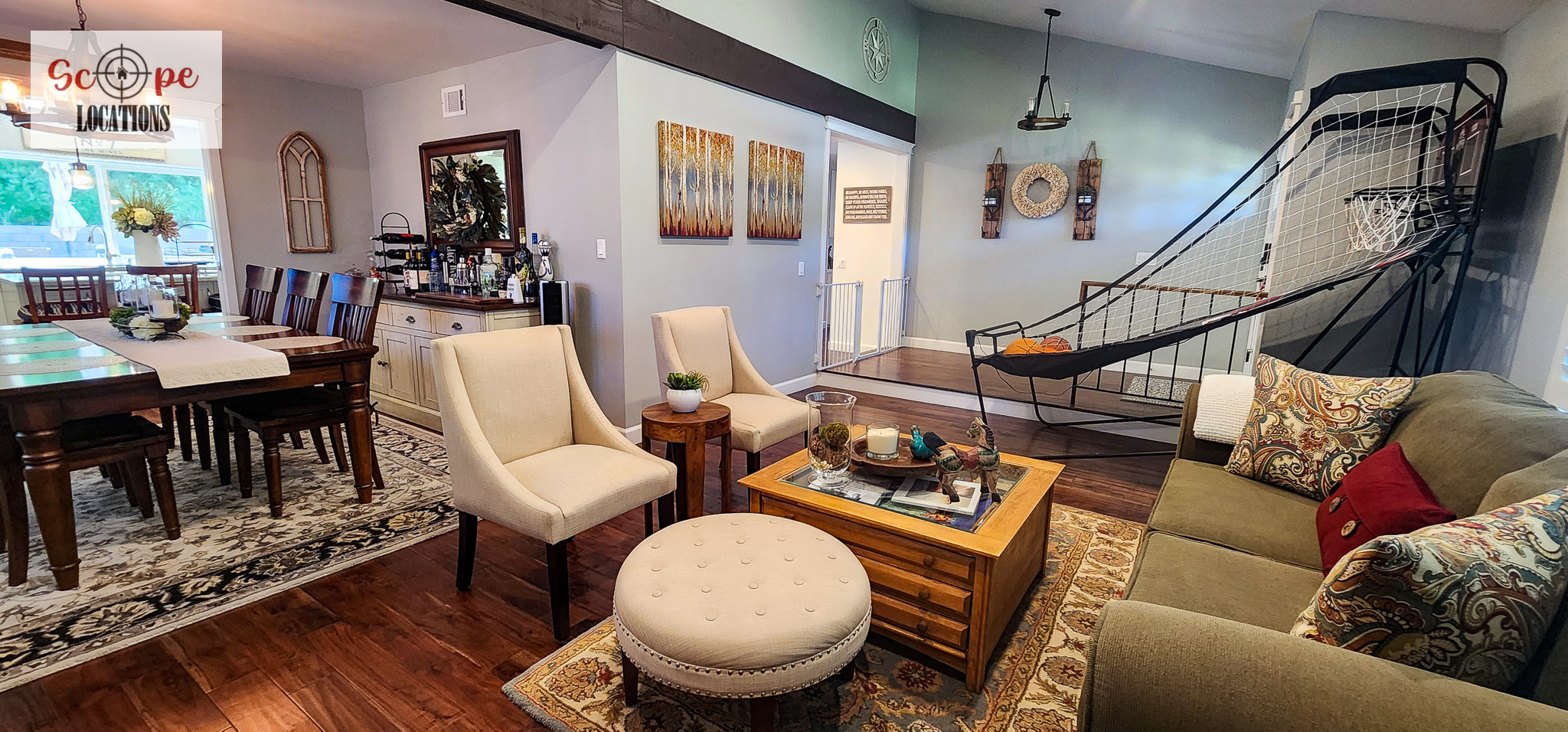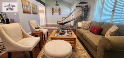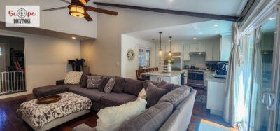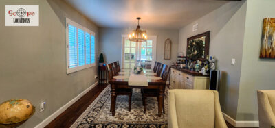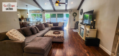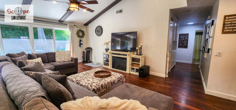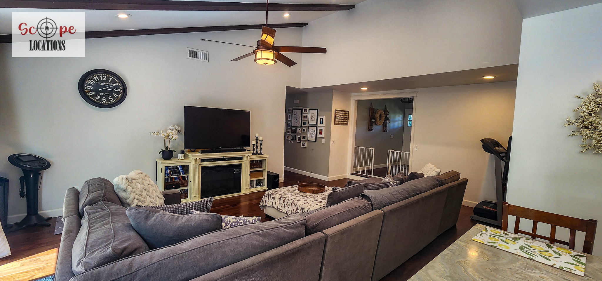 Hardwood FloorsCeiling FanRecessed LightingFireplaceHigh CeilingsOpen ConceptSliding Glass DoorStep Down Room