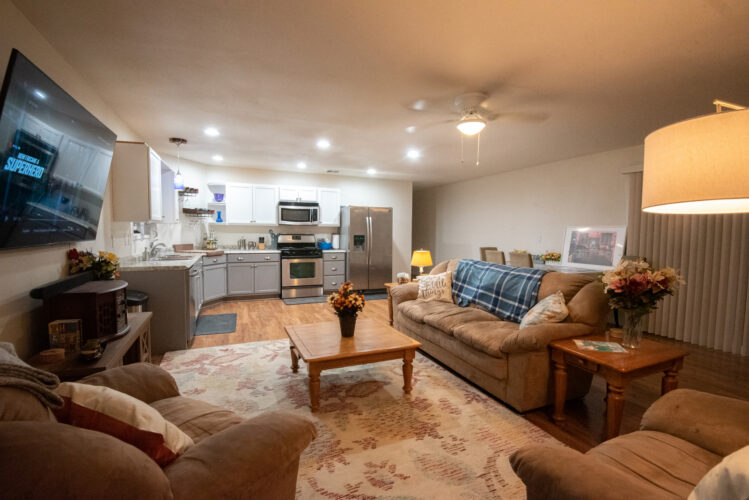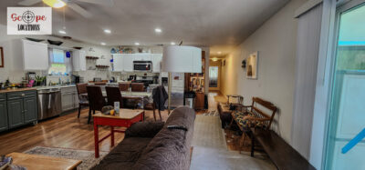- Track home on-site with a sectioned-off apartment-style area featuring two bedrooms, two bathrooms, and a second kitchen.