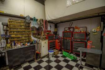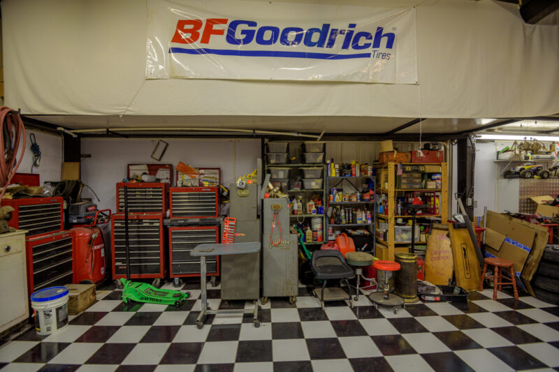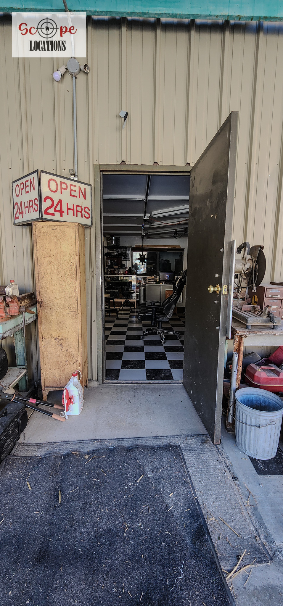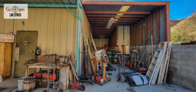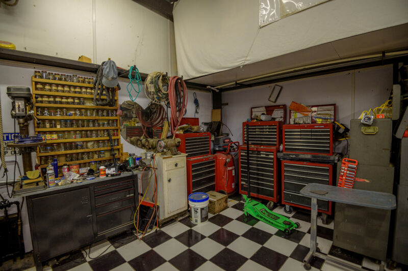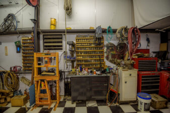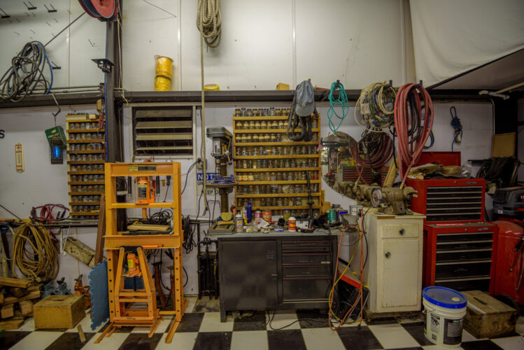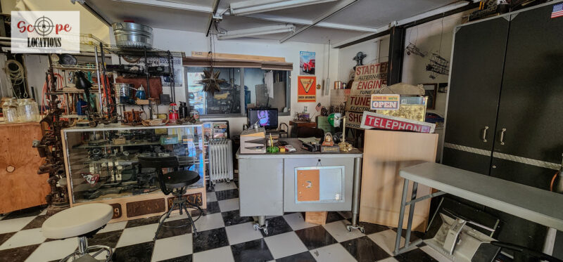 - Mechanic area filled with tools and natural aesthetics ideal for scenes involving repairs or auto work.