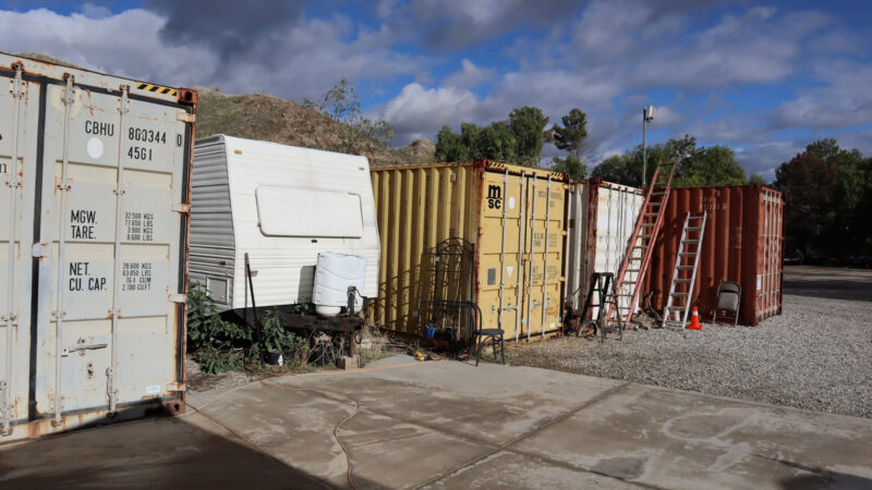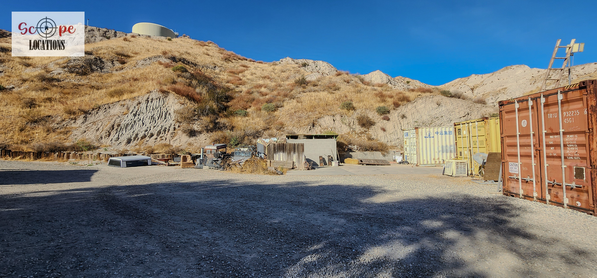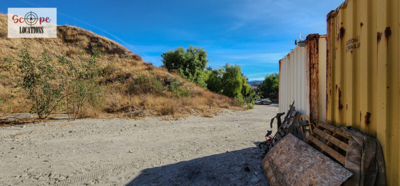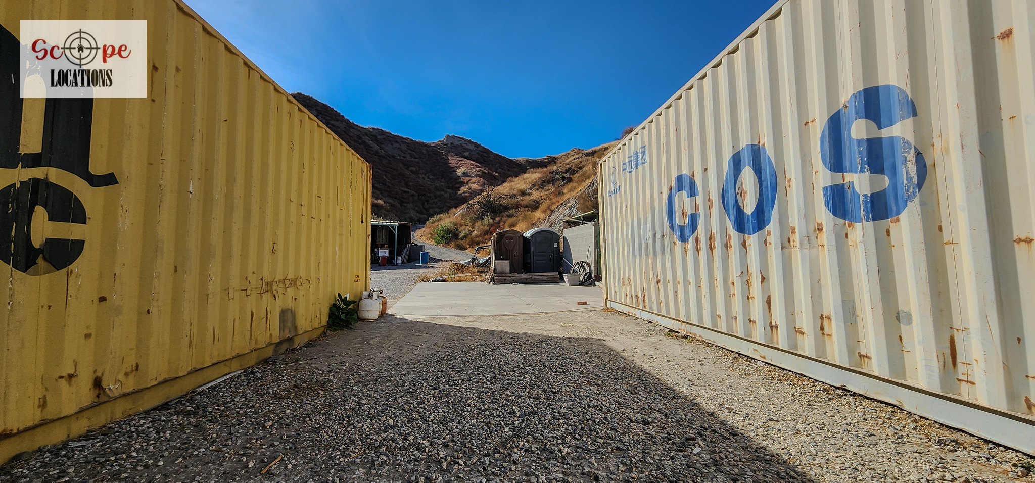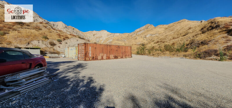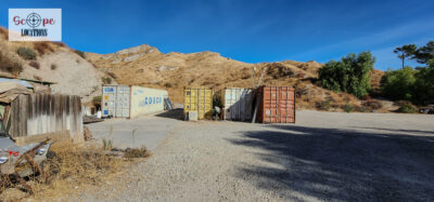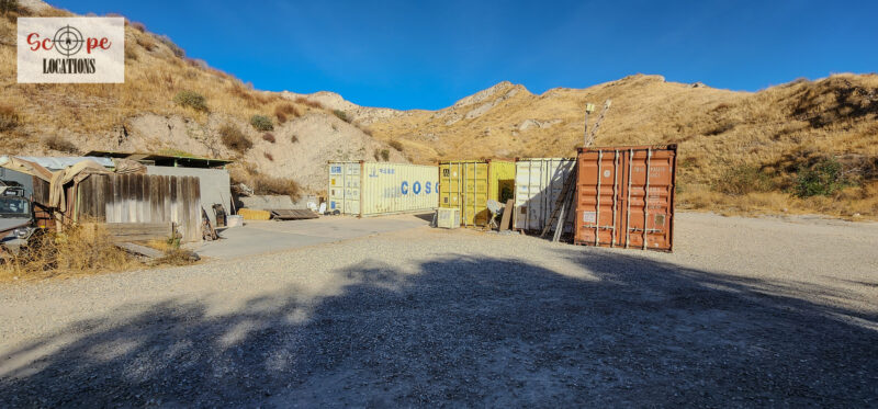 - Several shipping containers on-site, previously used for filming.