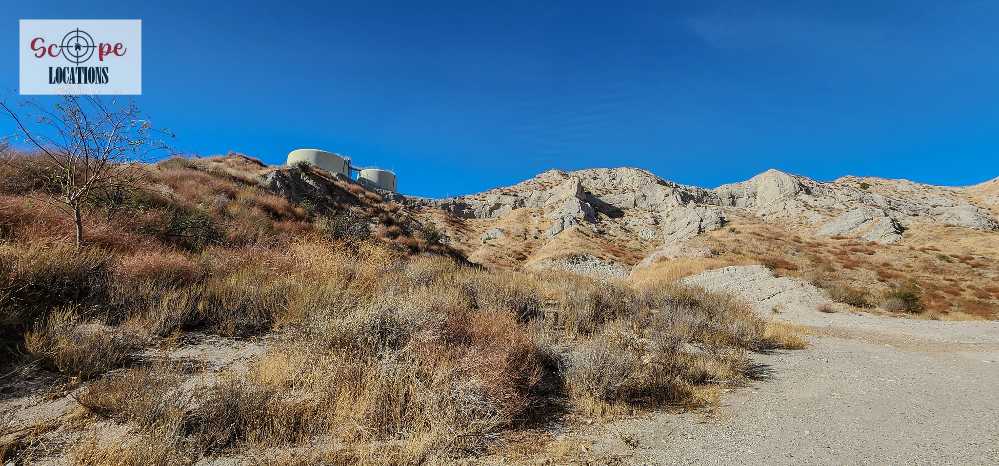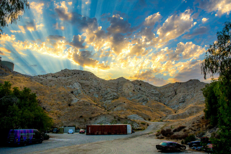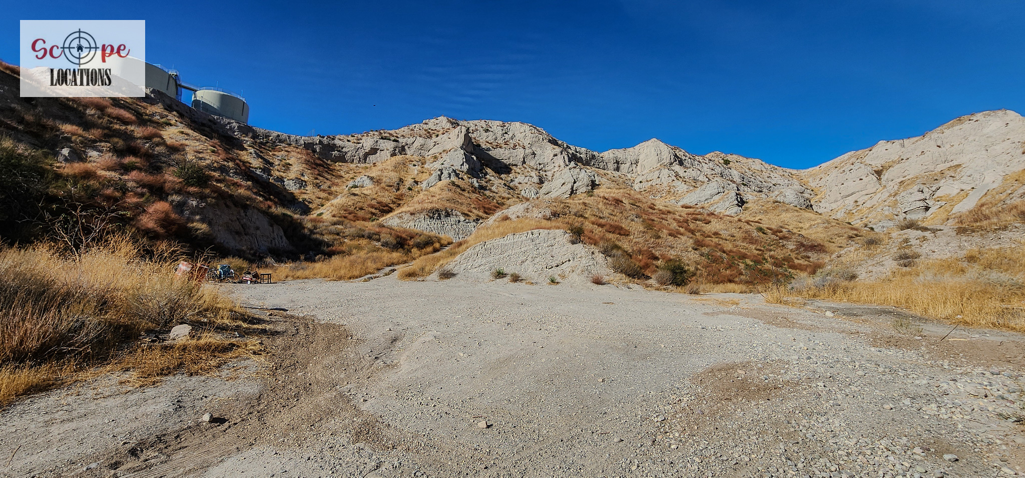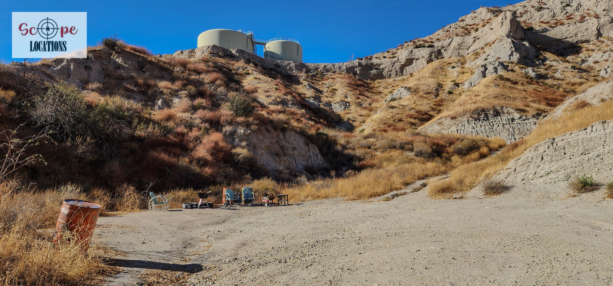 - Several shipping containers on-site, previously used for filming.