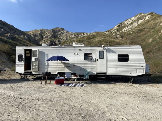 - Weathered trailer with a “Breaking Bad” vibe, perfect for hideout scenes.