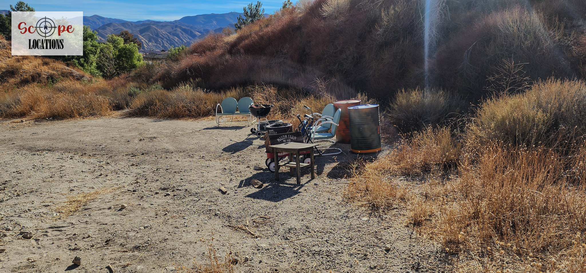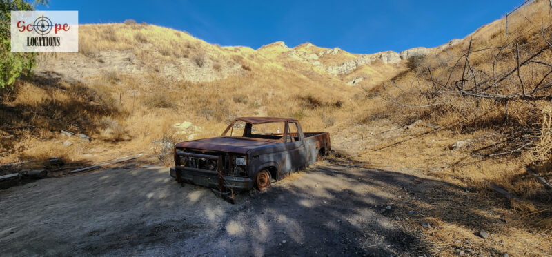 - Includes old cars on the property, one of which was burned and exploded in the Tick Fire, adding authentic character.