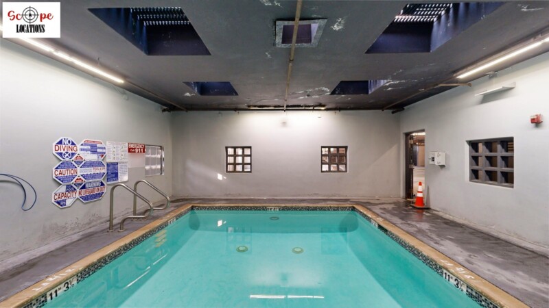 Indoor Pool: Conveniently located off the parking garage, ideal for dynamic water scenes.