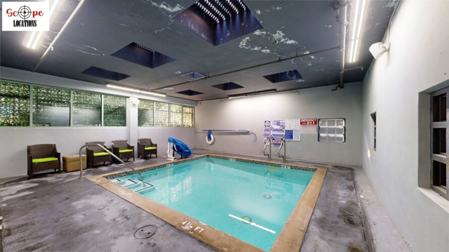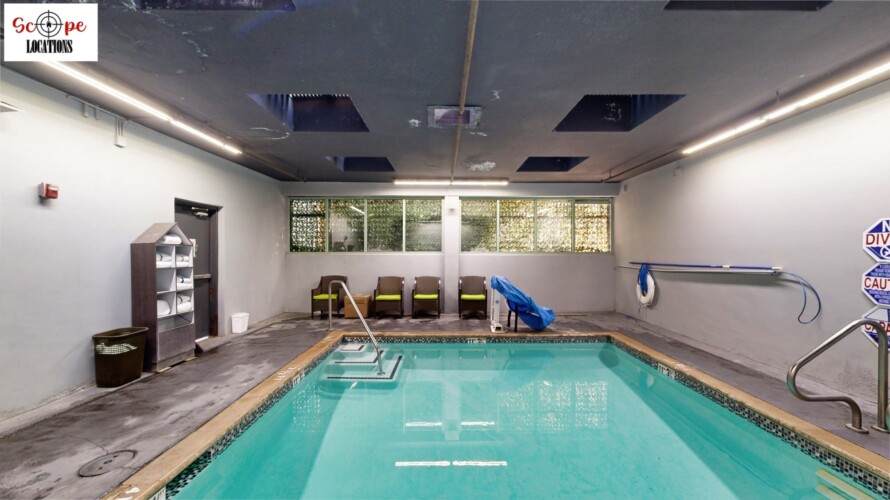 Indoor Pool: Conveniently located off the parking garage, ideal for dynamic water scenes.
