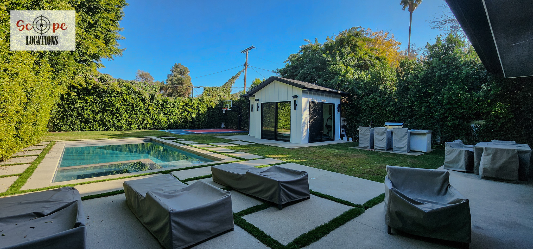 - Pool house offering additional filming versatility.