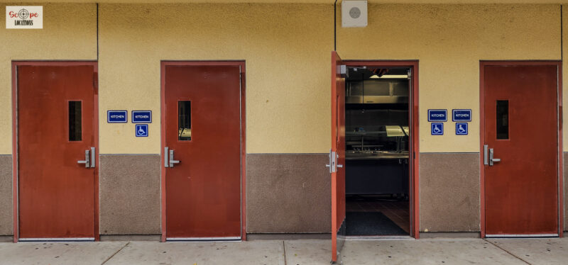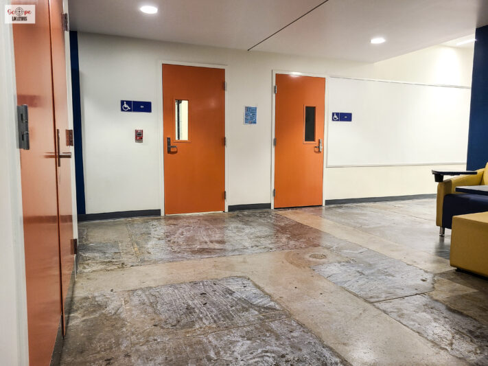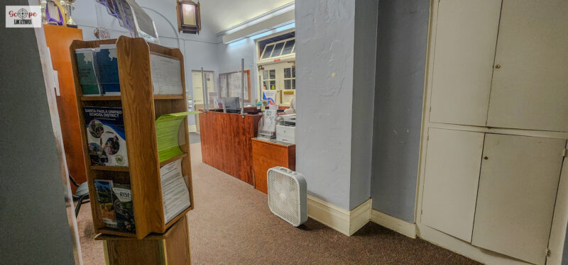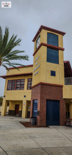 - Original building boasts an iconic facade characterized by a red-tiled roof, stucco walls, and elegant arched entryways