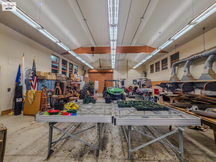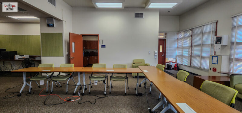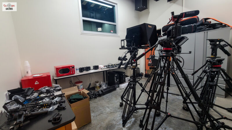 - Media department is equipped with a green screen, sleek black walls, and strategically placed overhead lighting, creating an ideal environment for video production