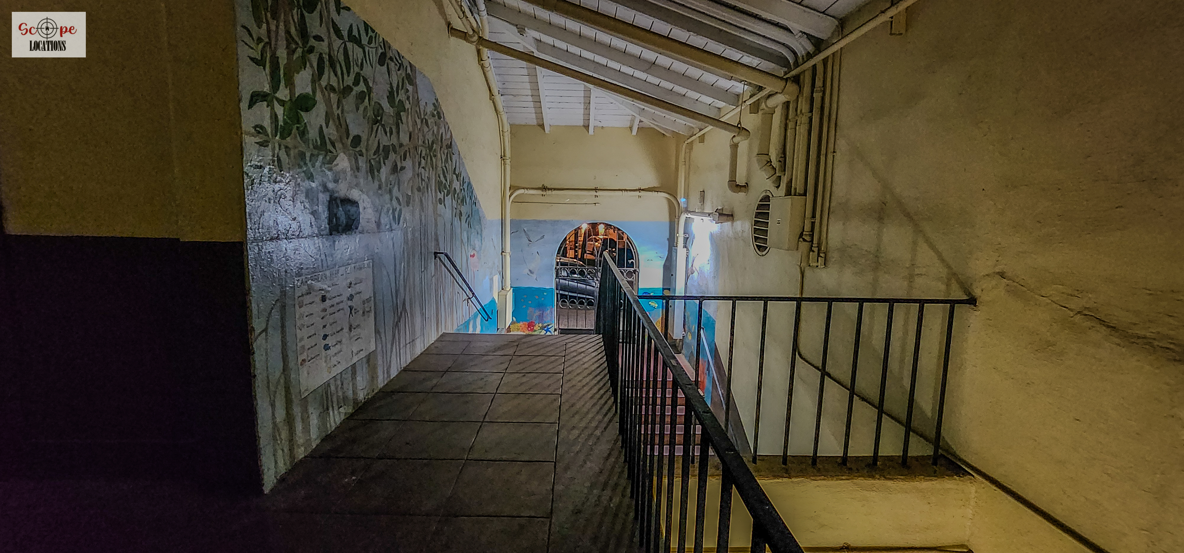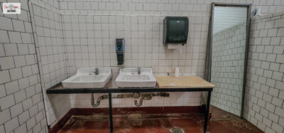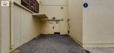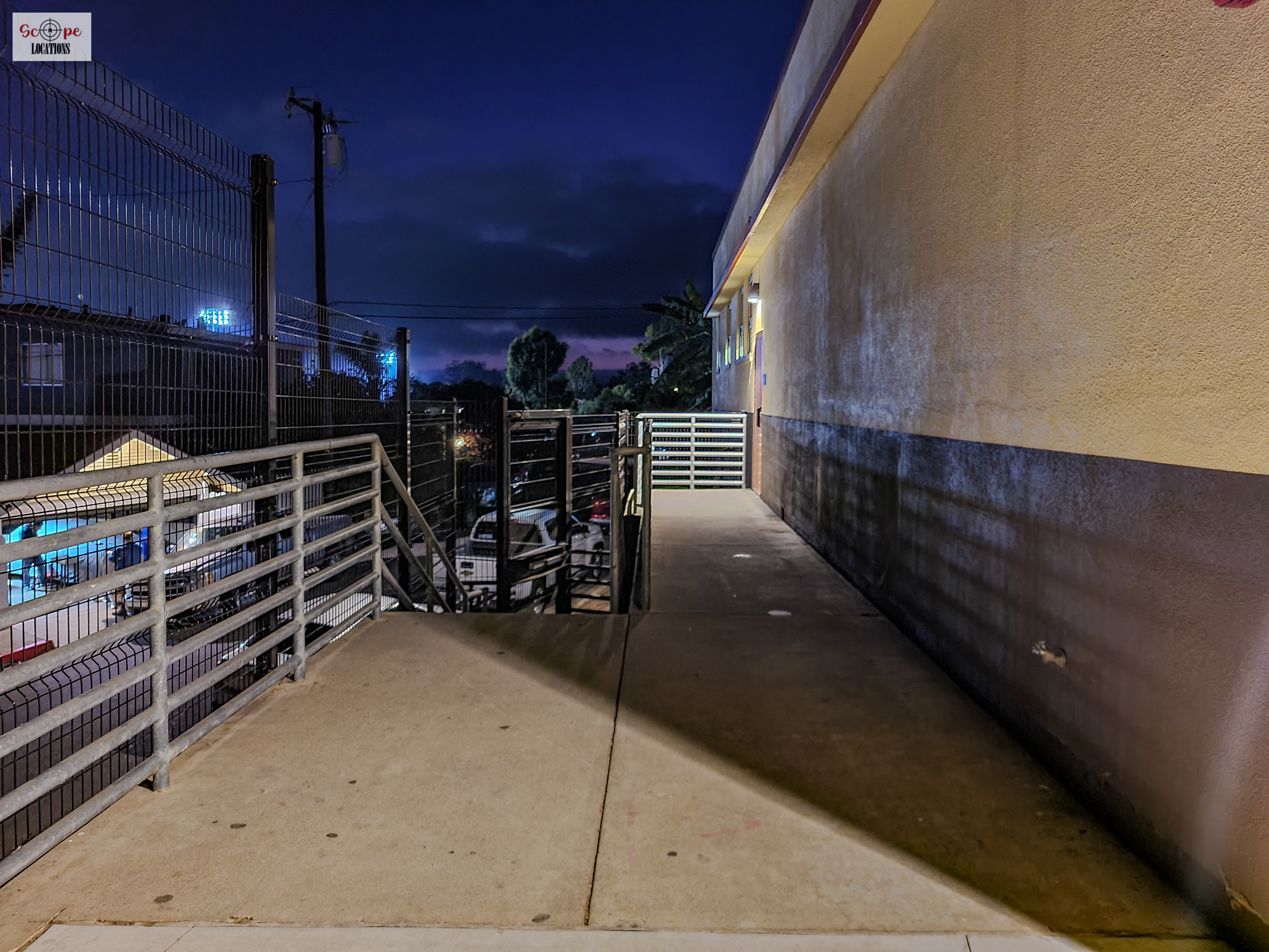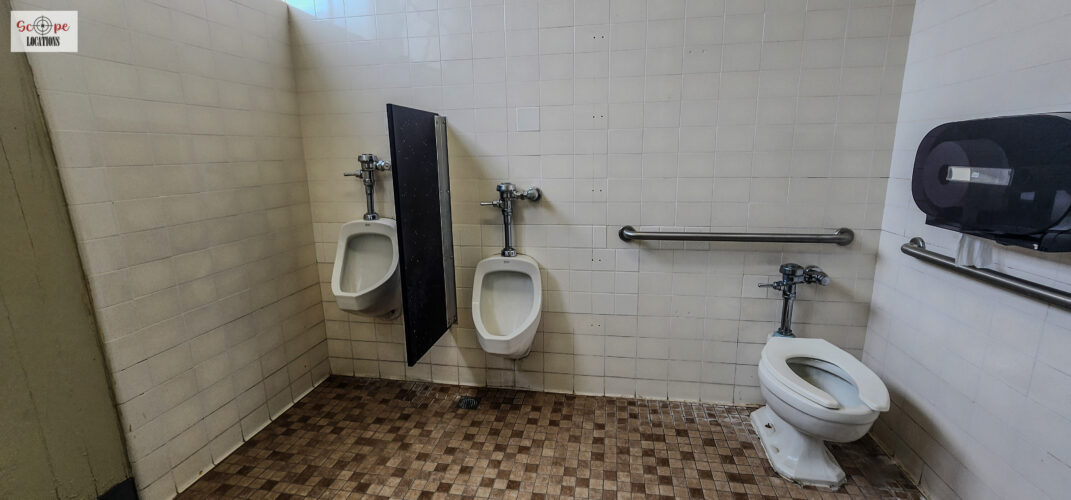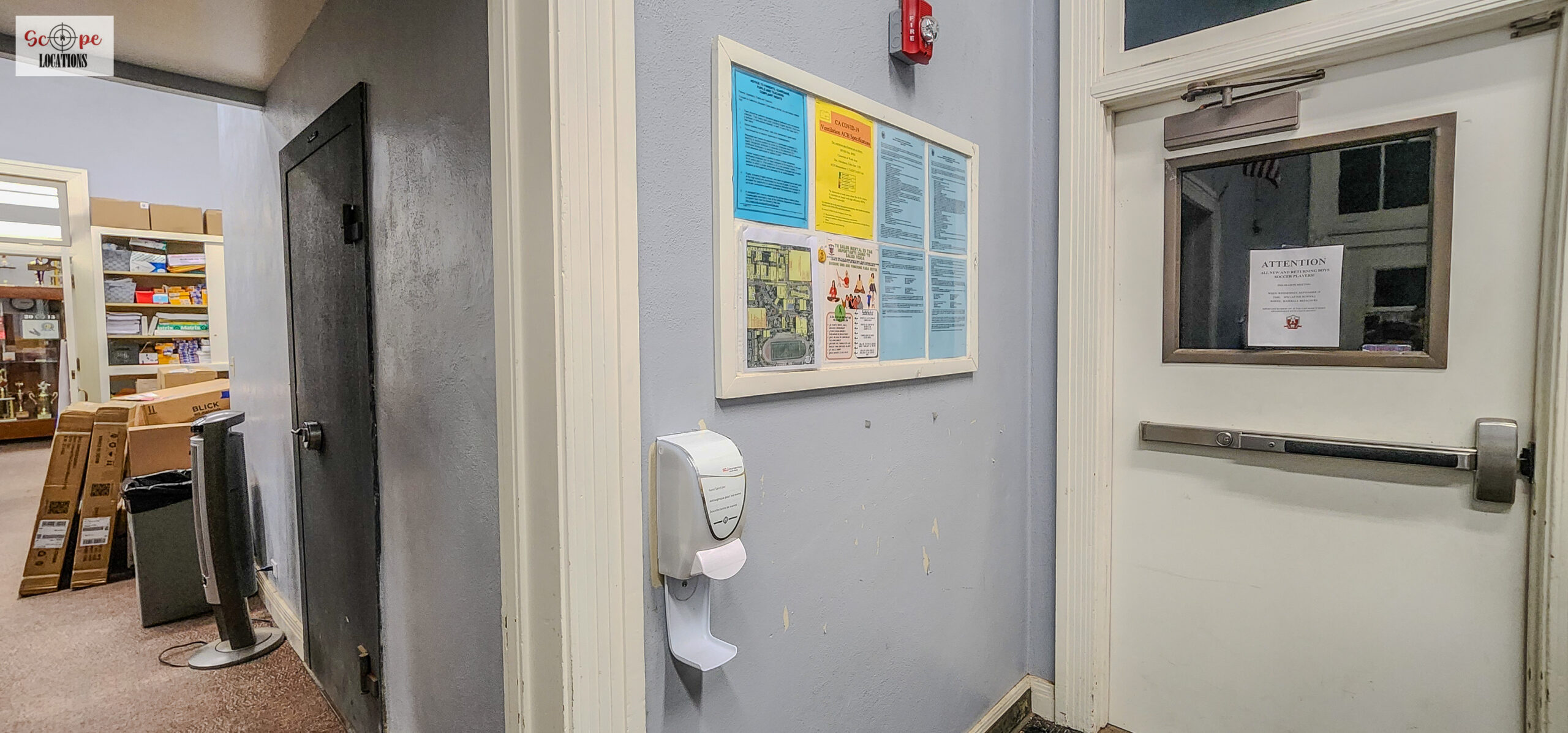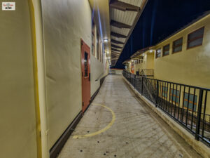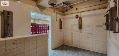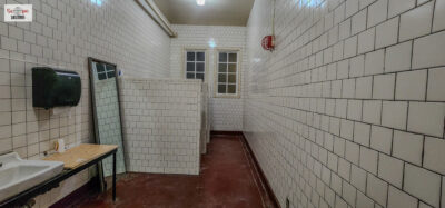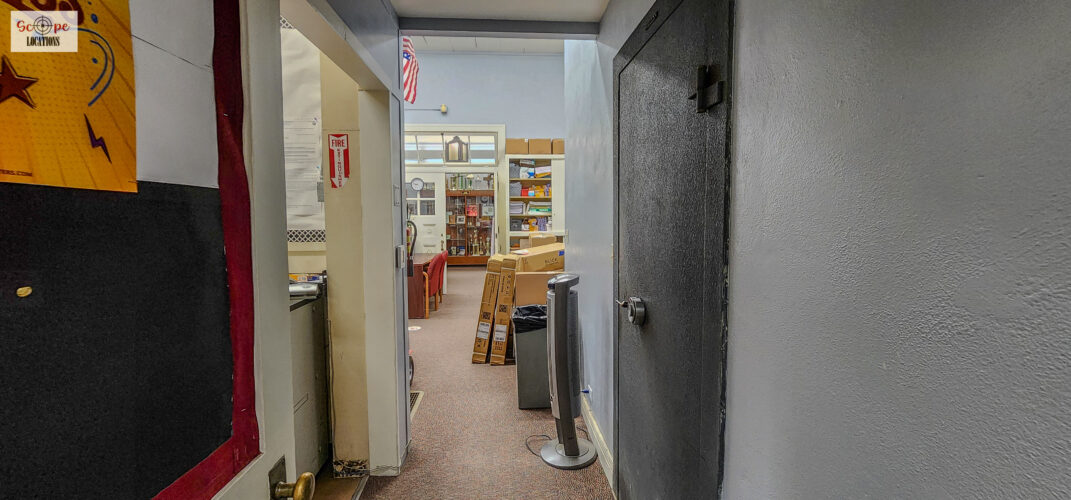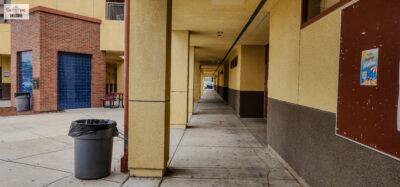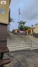 - Original building boasts an iconic facade characterized by a red-tiled roof, stucco walls, and elegant arched entryways