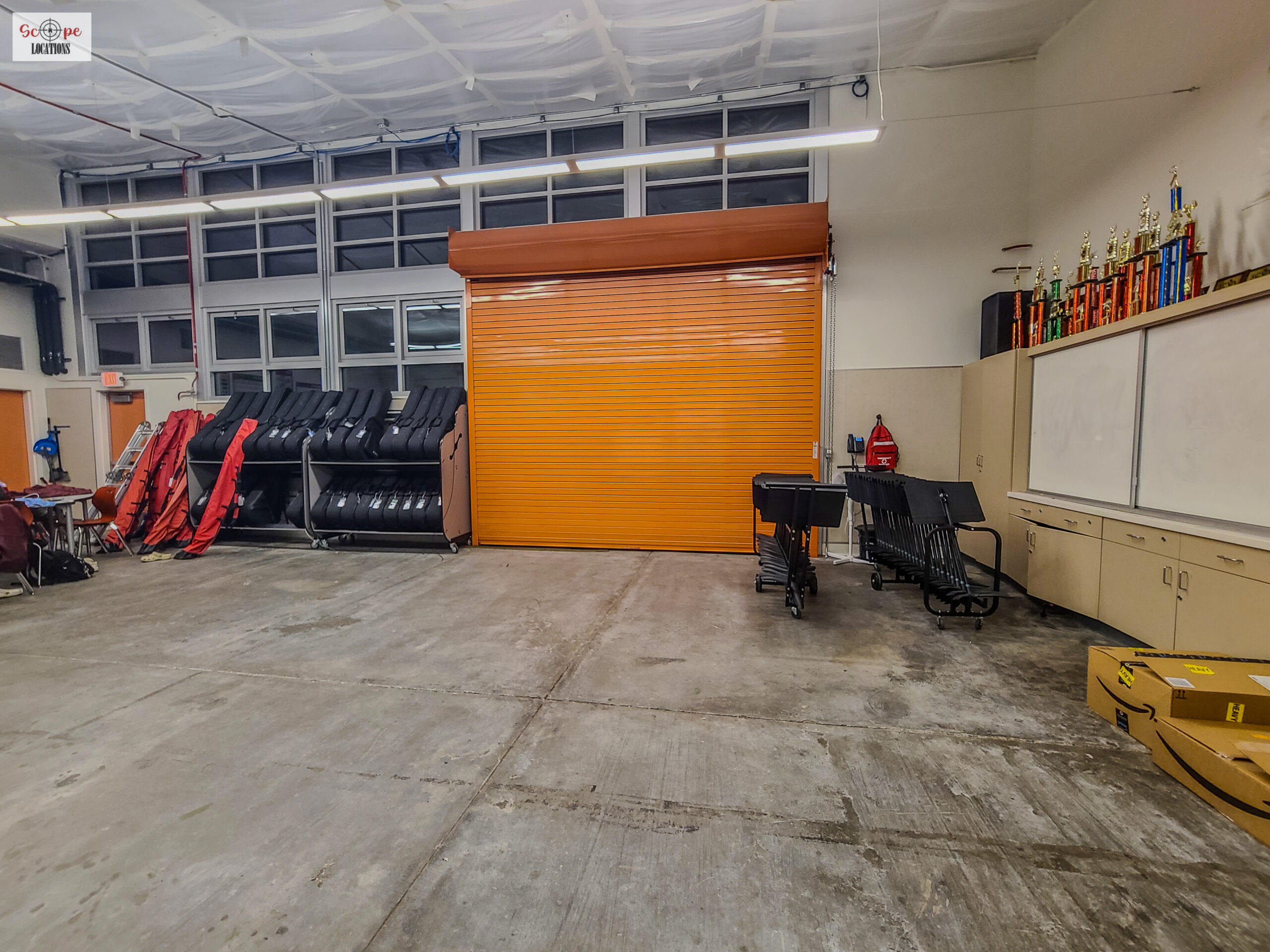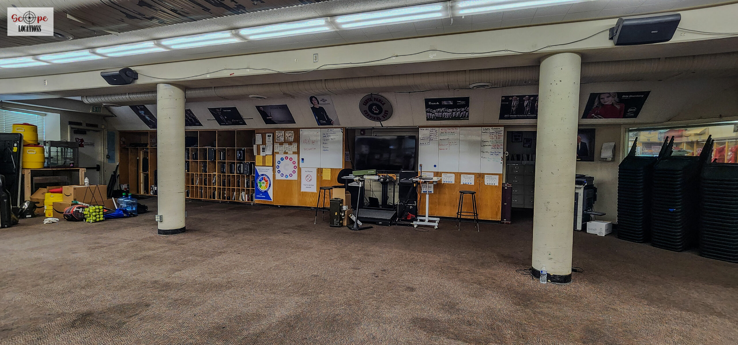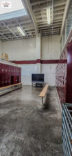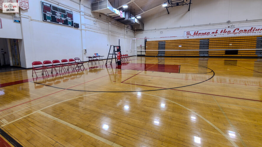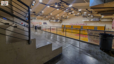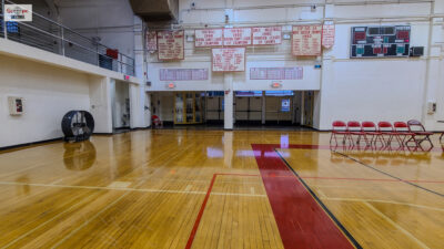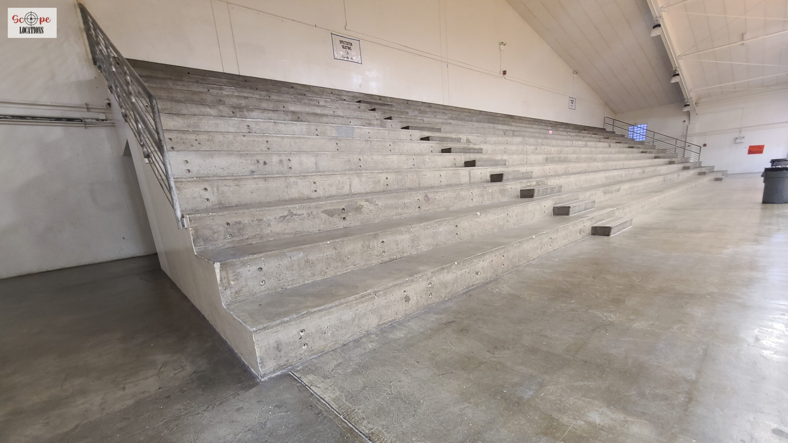- Spacious gymnasium featuring retractable bleacher seating, versatile basketball and volleyball courts, along with a second-story concrete viewing area for an elevated spectator experience