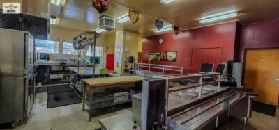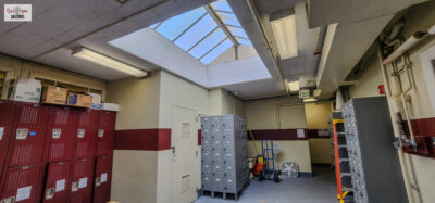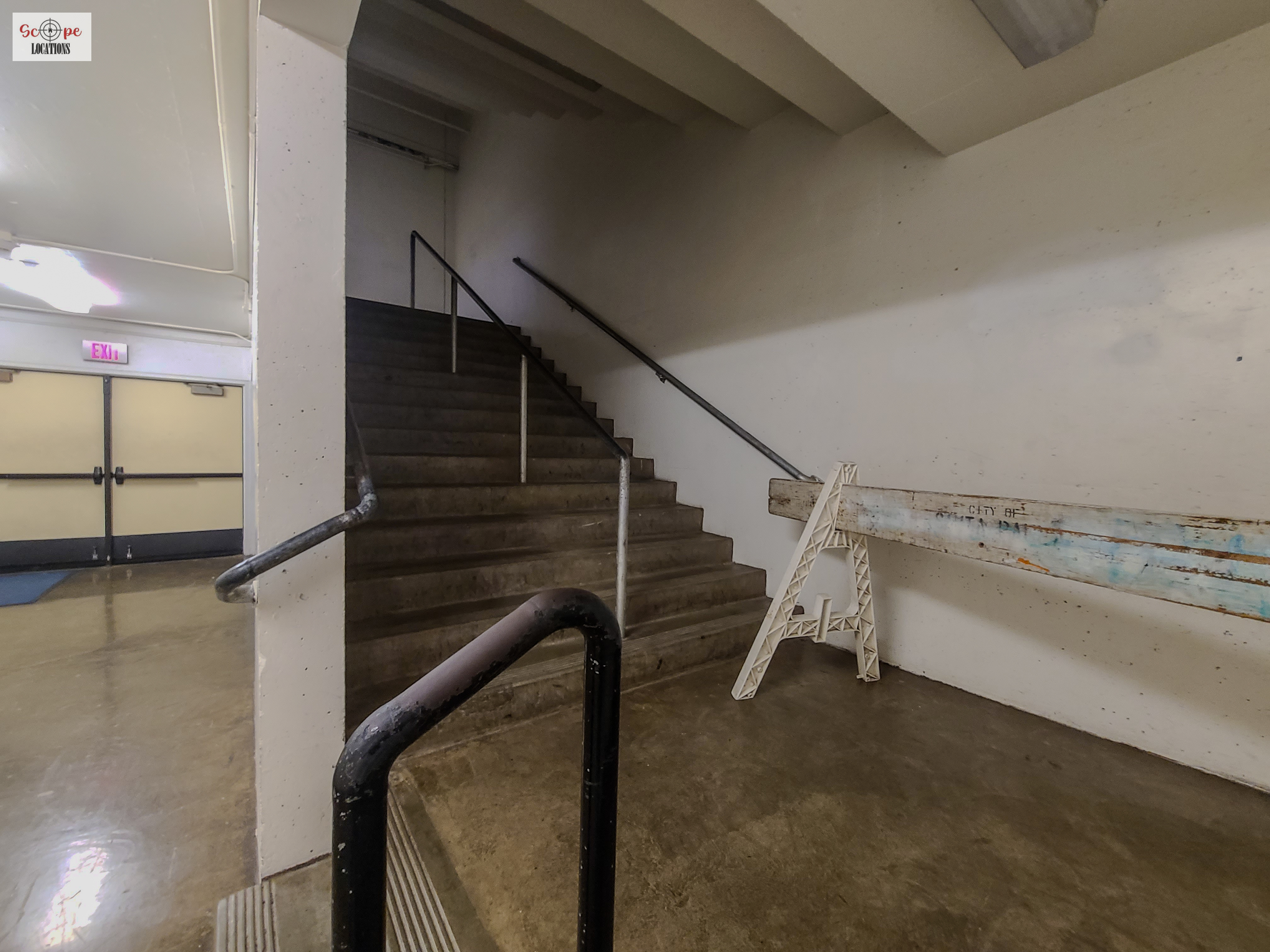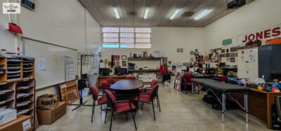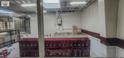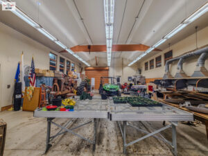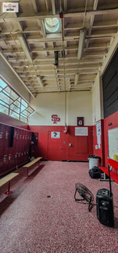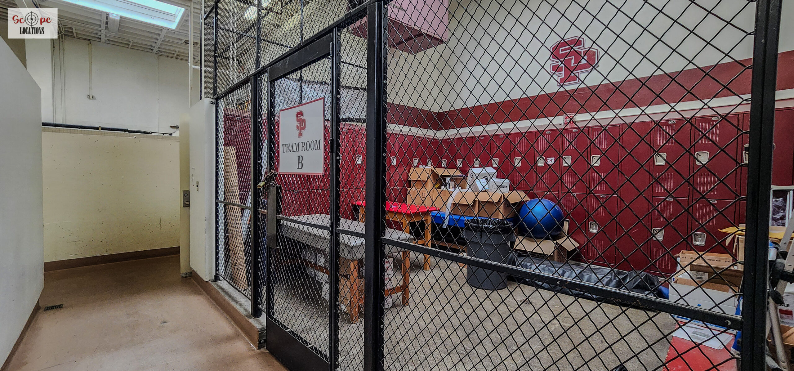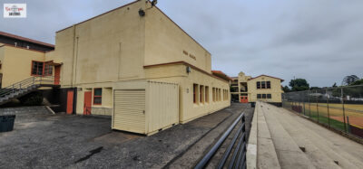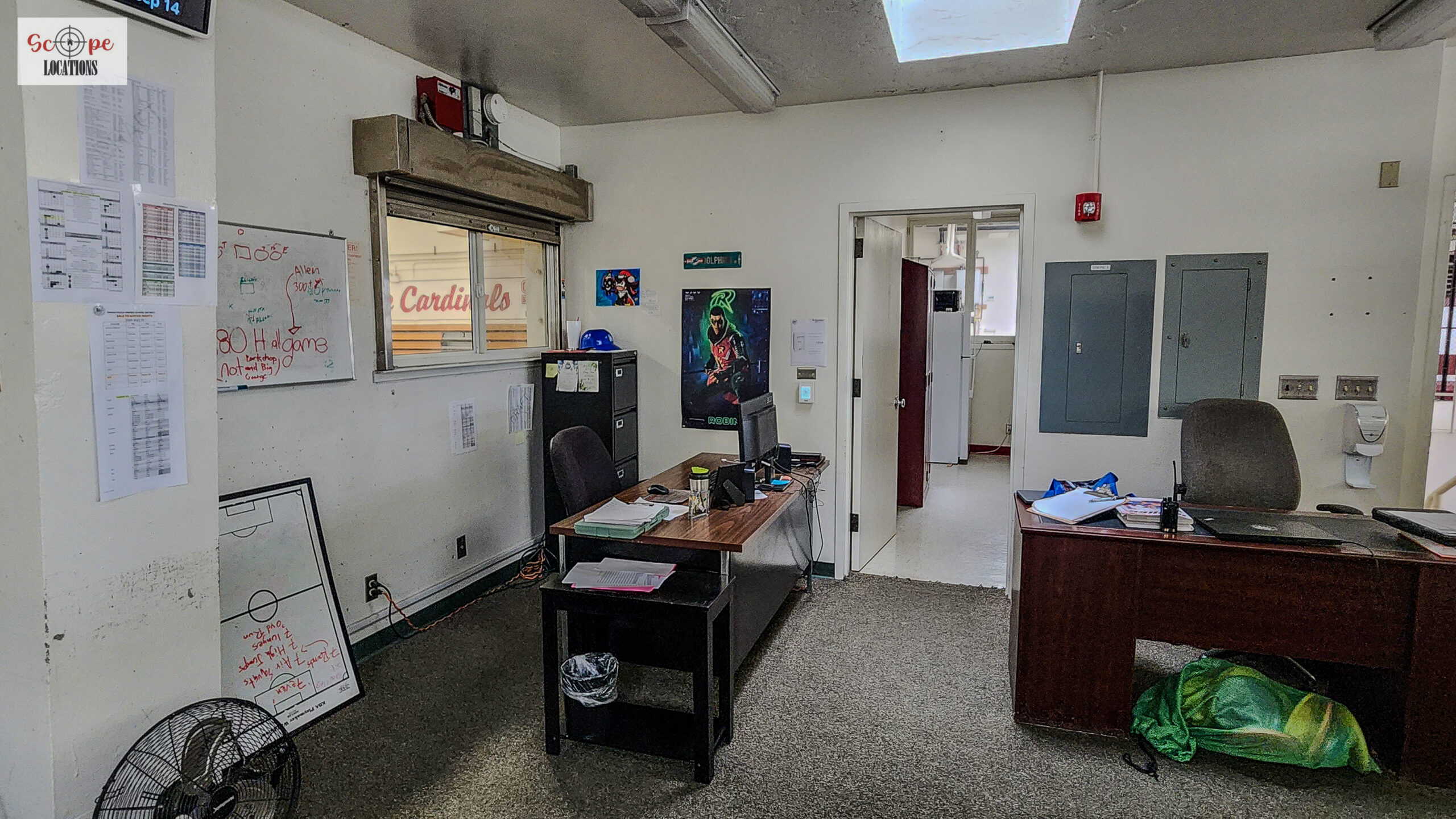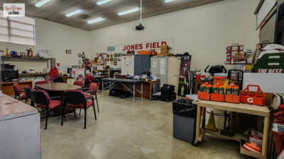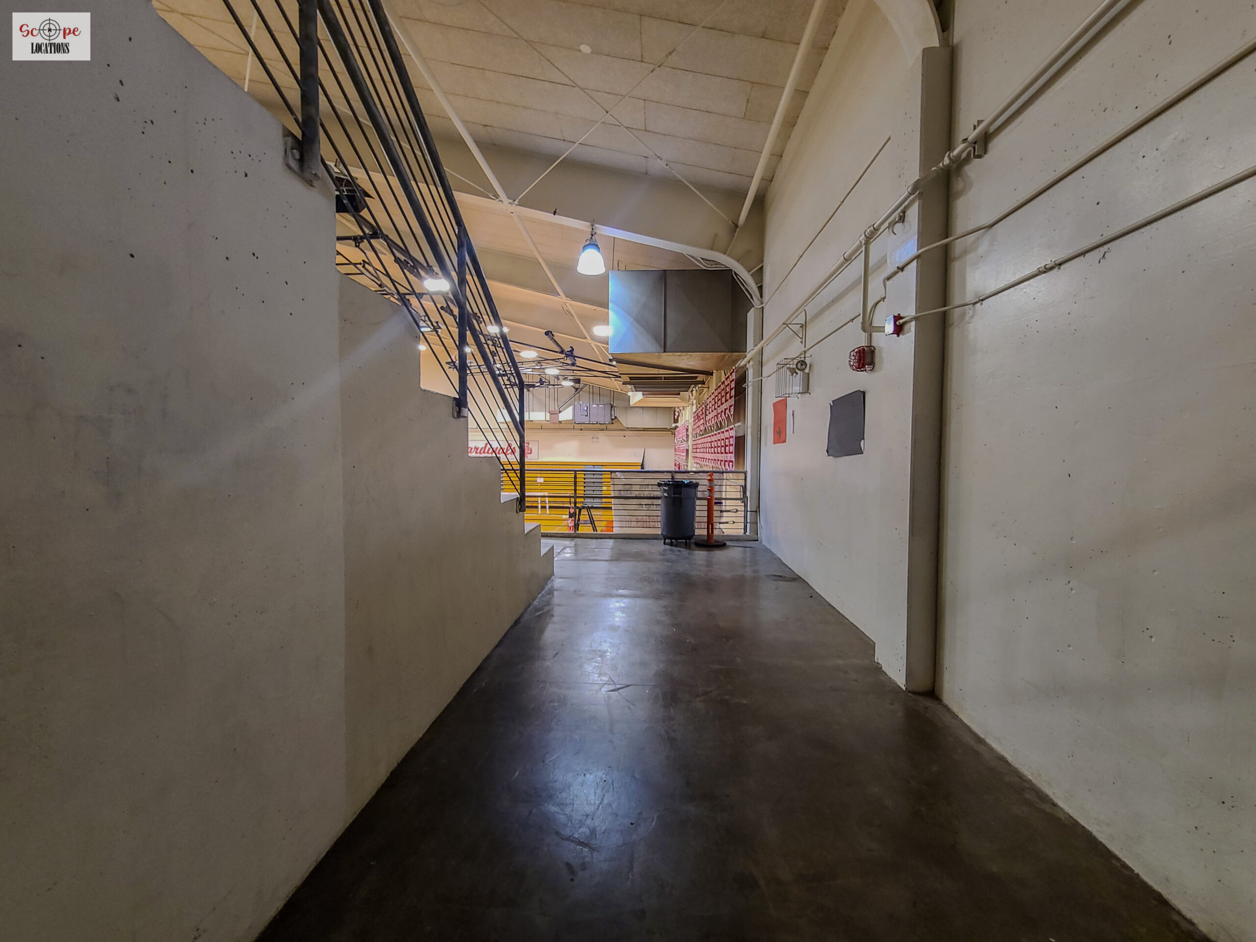 - Spacious gymnasium featuring retractable bleacher seating, versatile basketball and volleyball courts, along with a second-story concrete viewing area for an elevated spectator experience