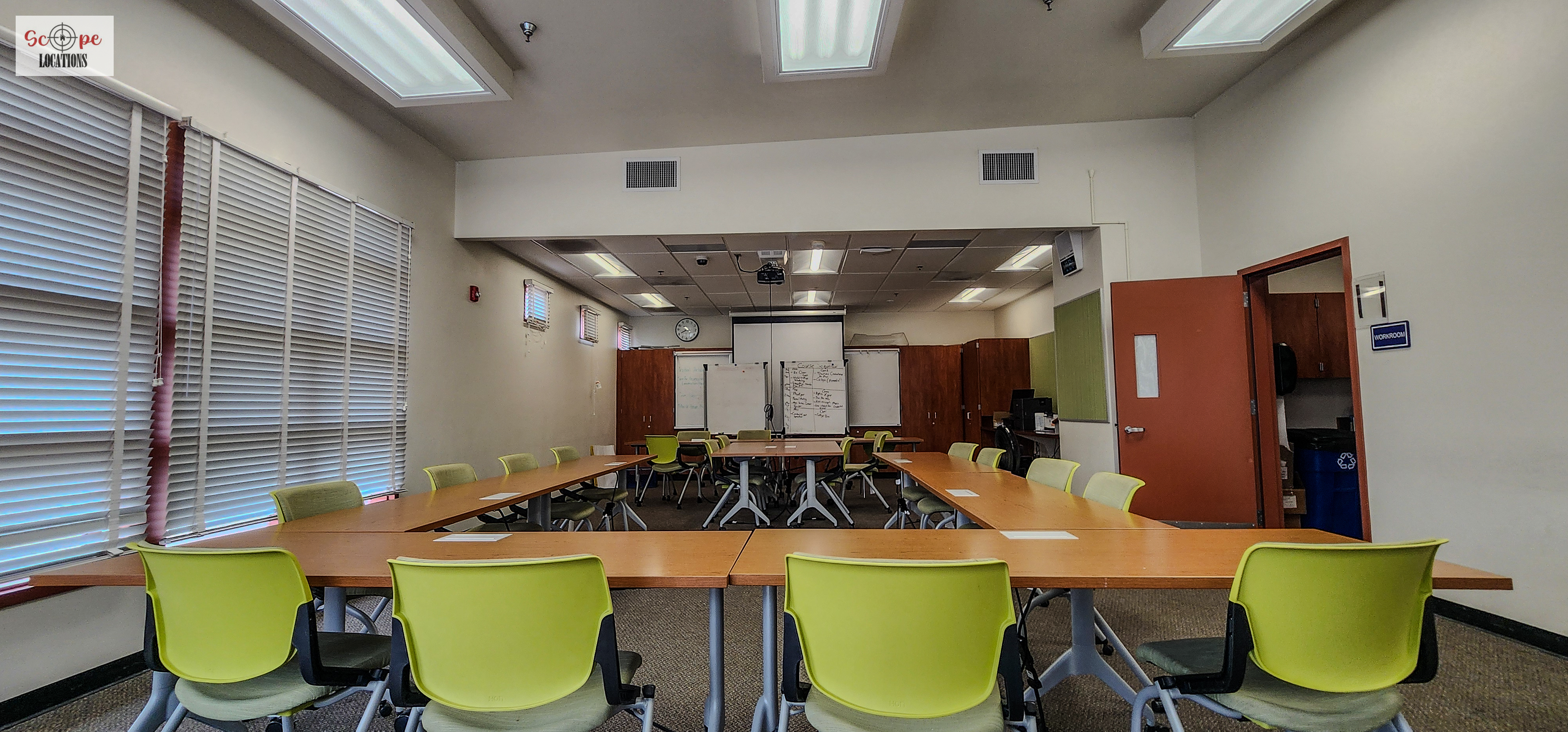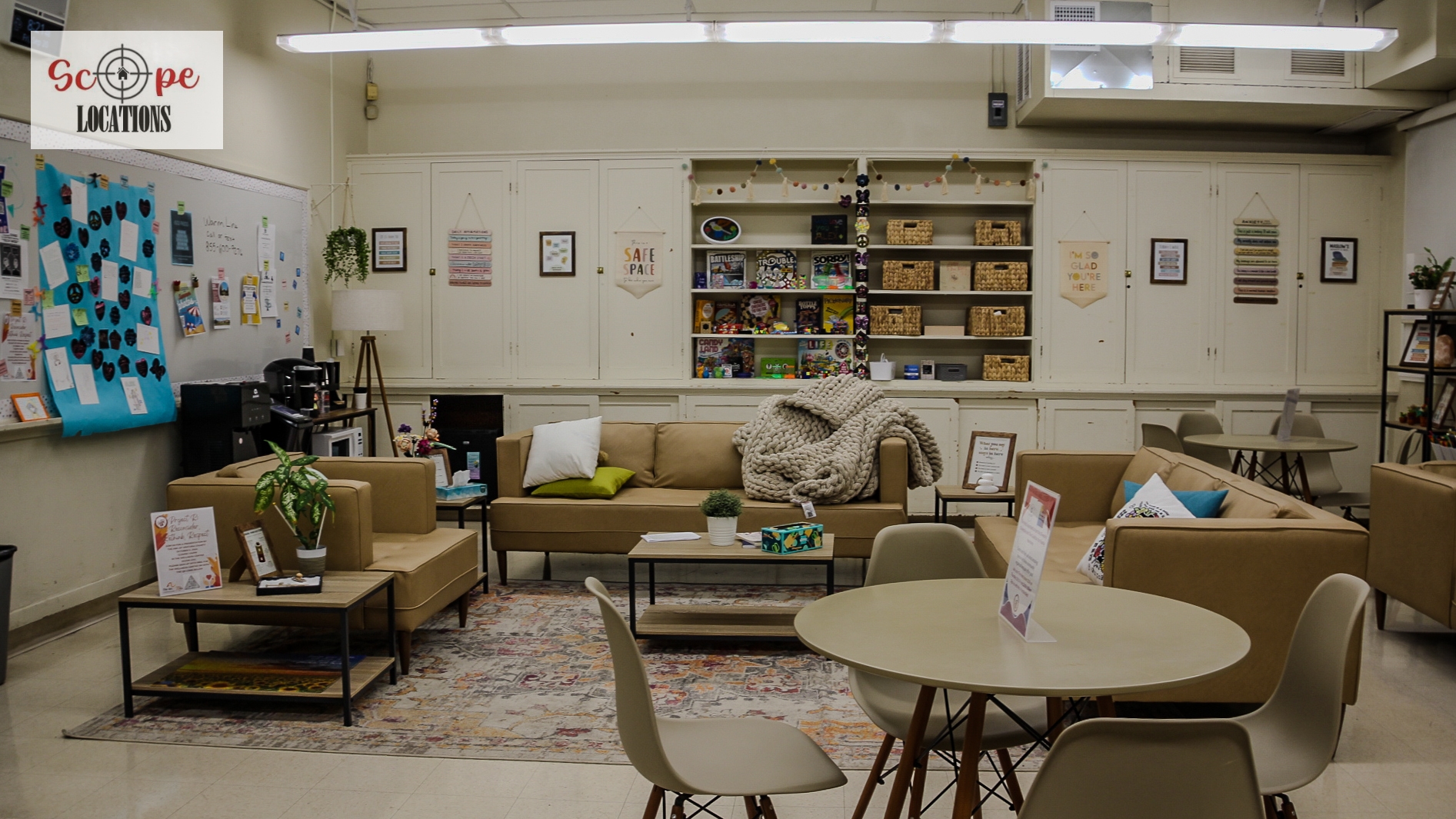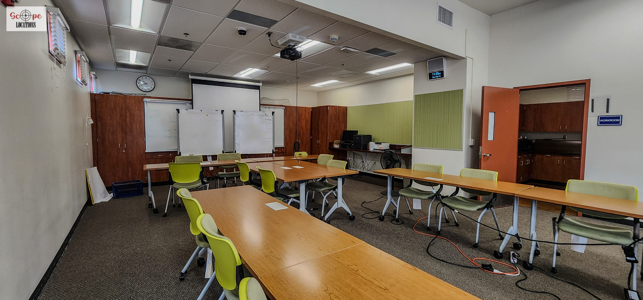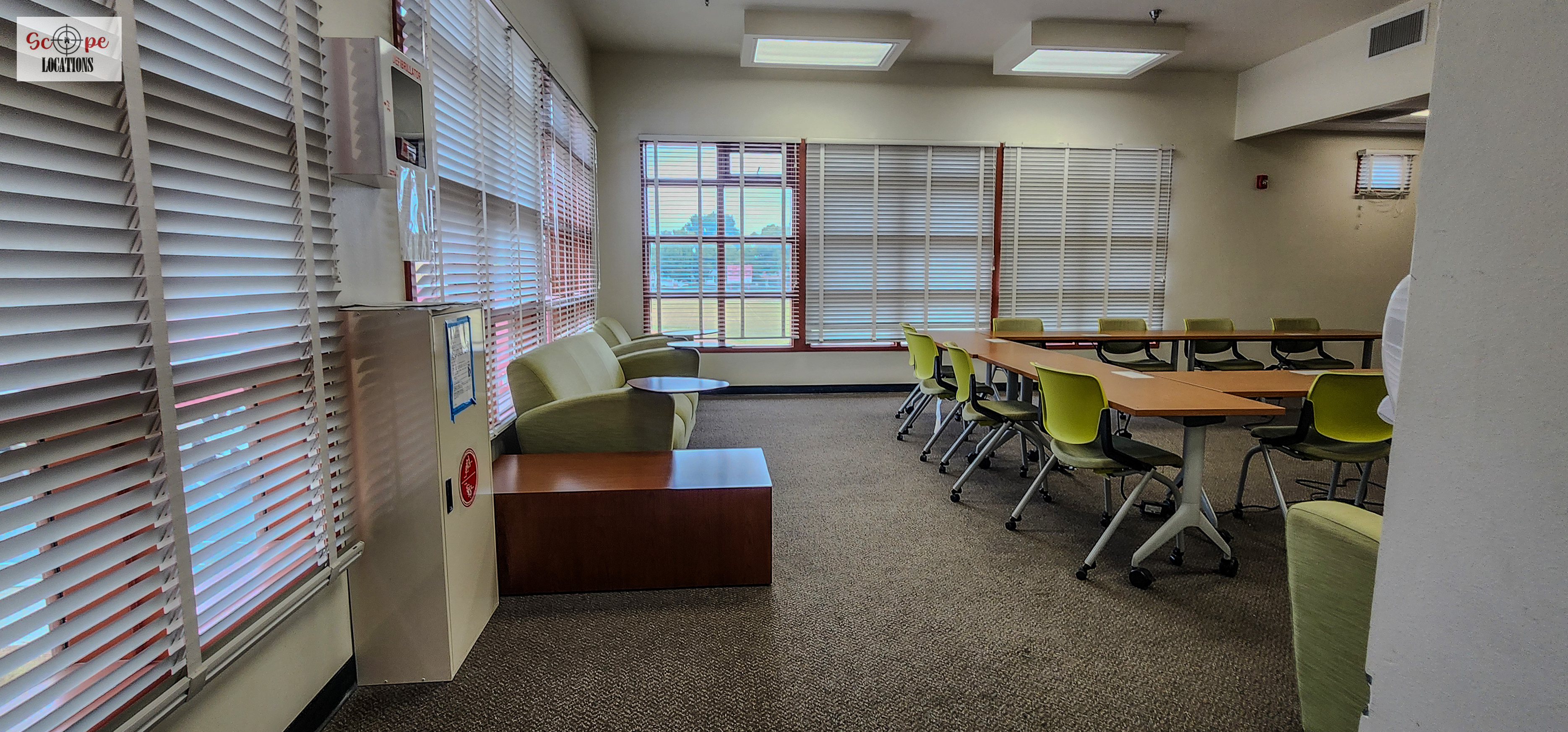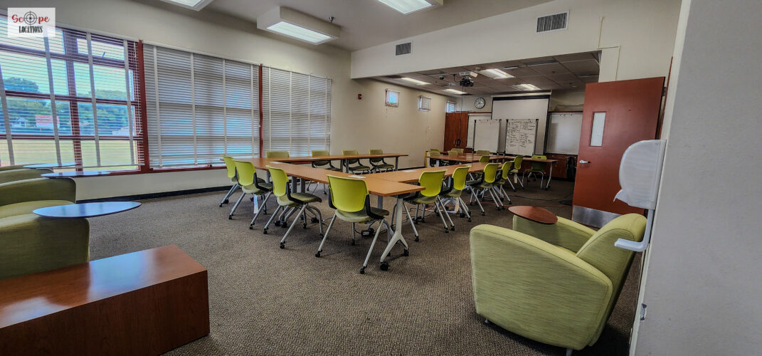 - Media department is equipped with a green screen, sleek black walls, and strategically placed overhead lighting, creating an ideal environment for video production