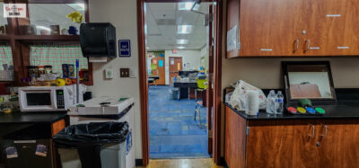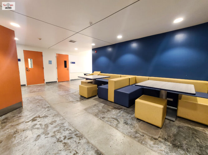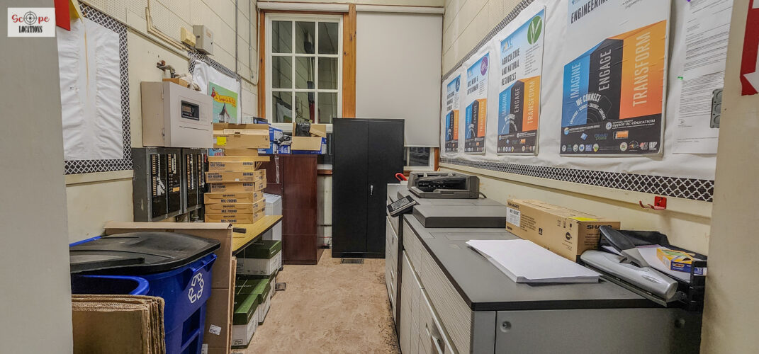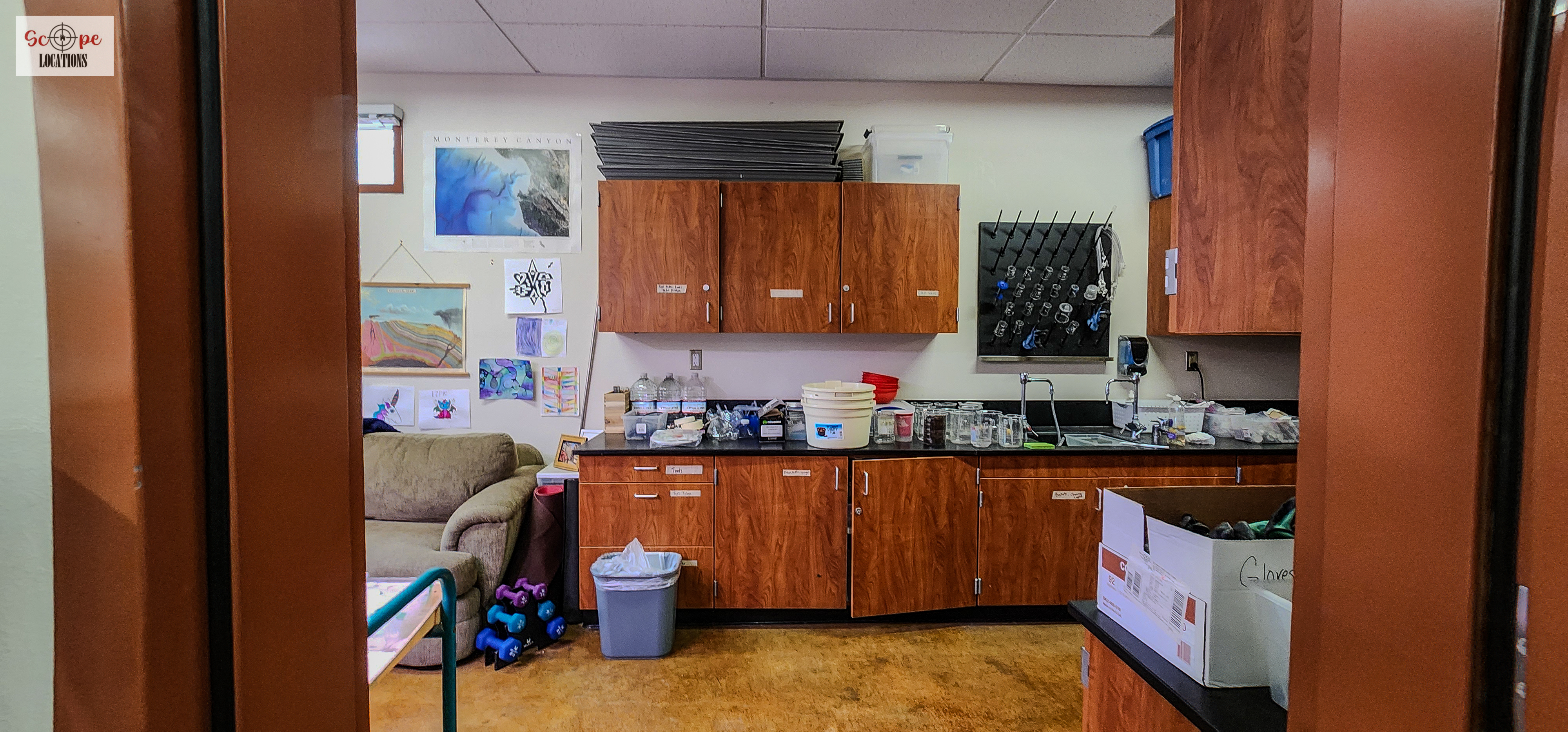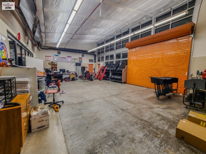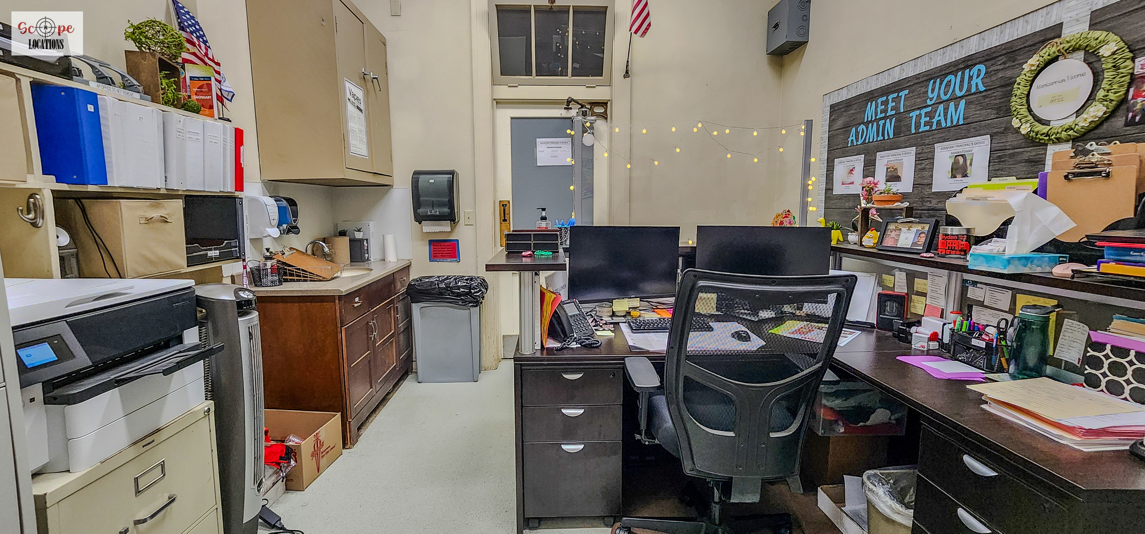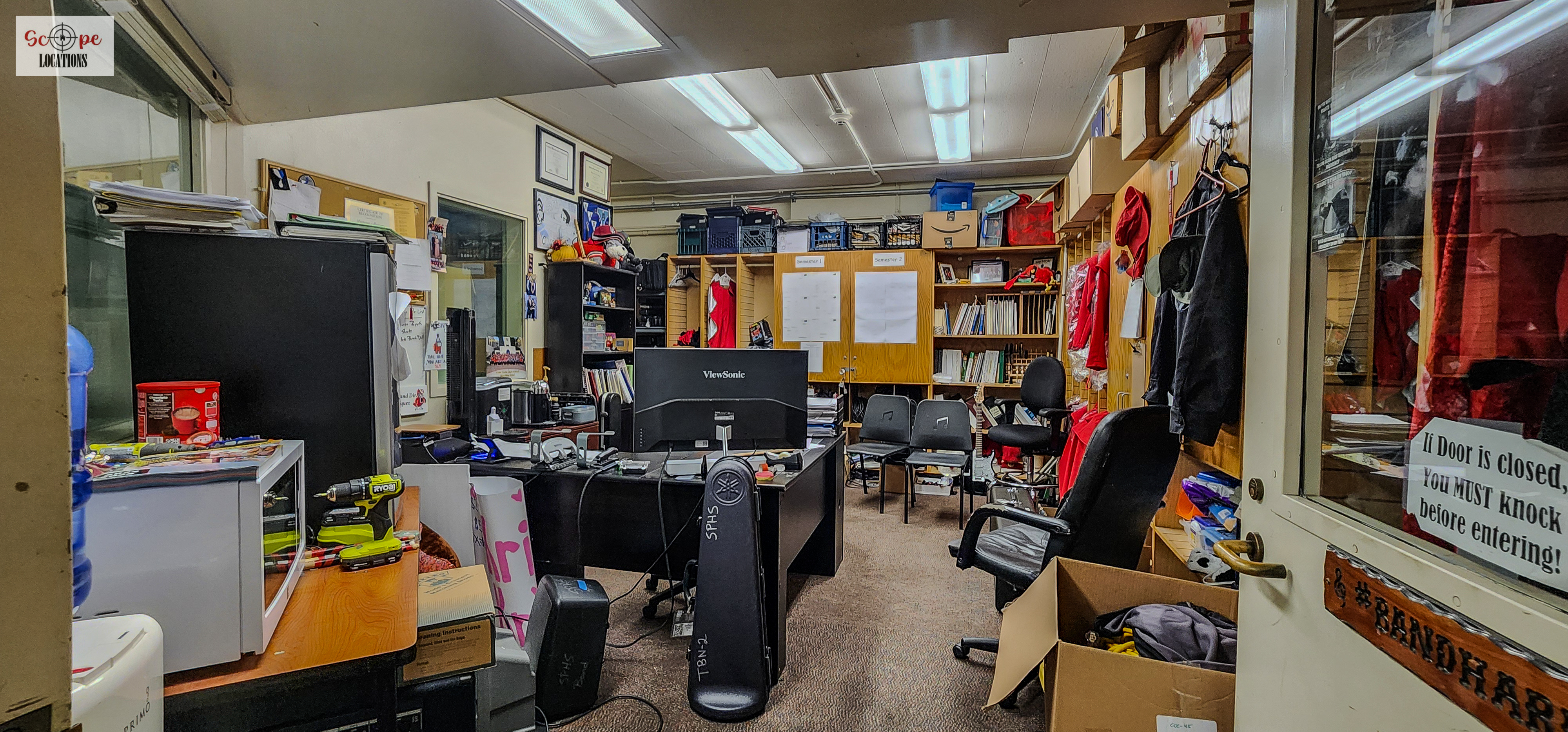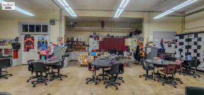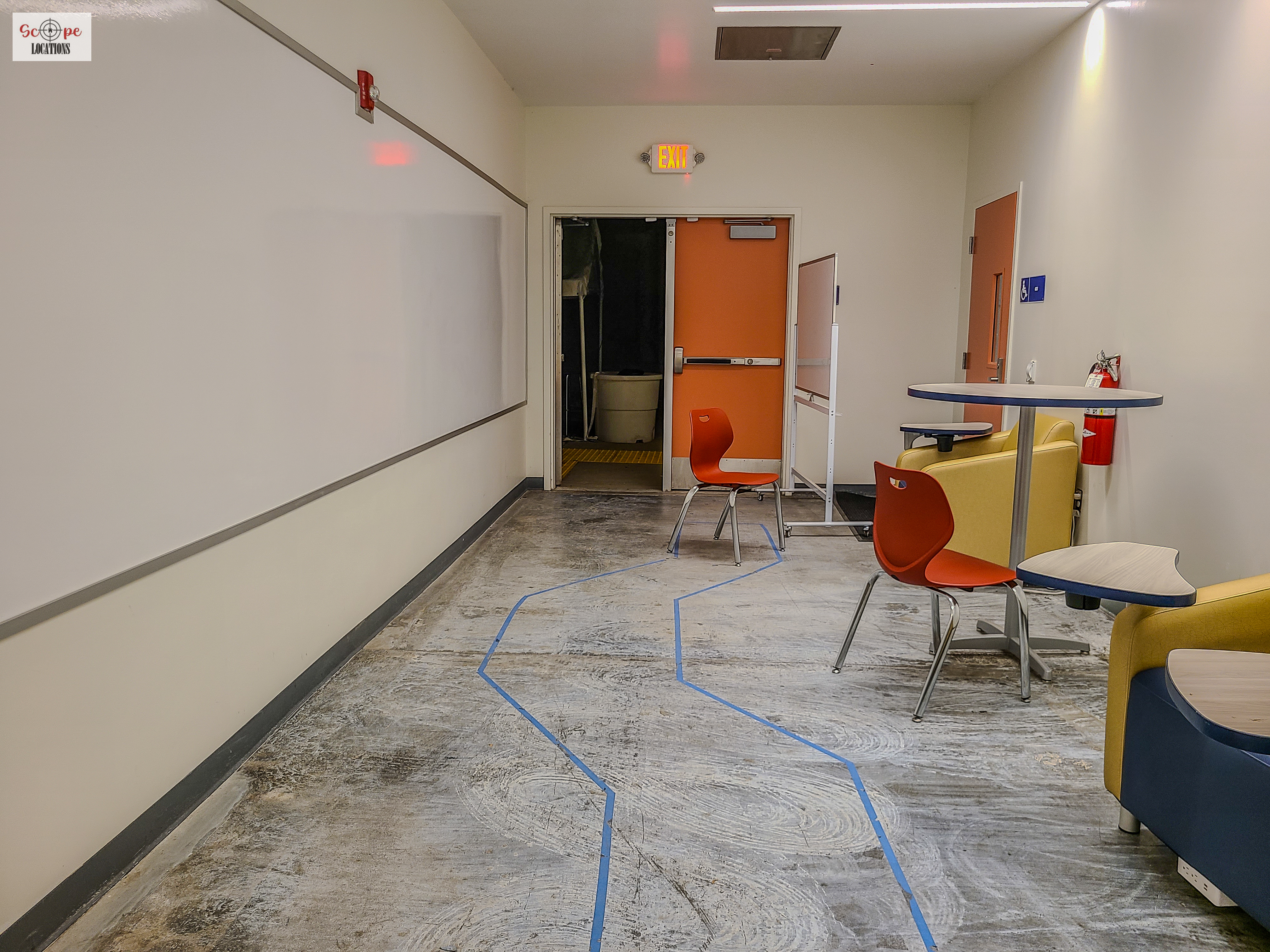 - Media department is equipped with a green screen, sleek black walls, and strategically placed overhead lighting, creating an ideal environment for video production