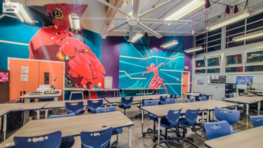 - A classic Southern California high school setting with a mix of historic and contemporary styles